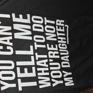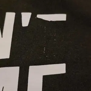 So finally received this shirt that I knew my daughters father would love and the quality is not as shown… the image itself in uncentered and the letters all have a drip like white streak going down