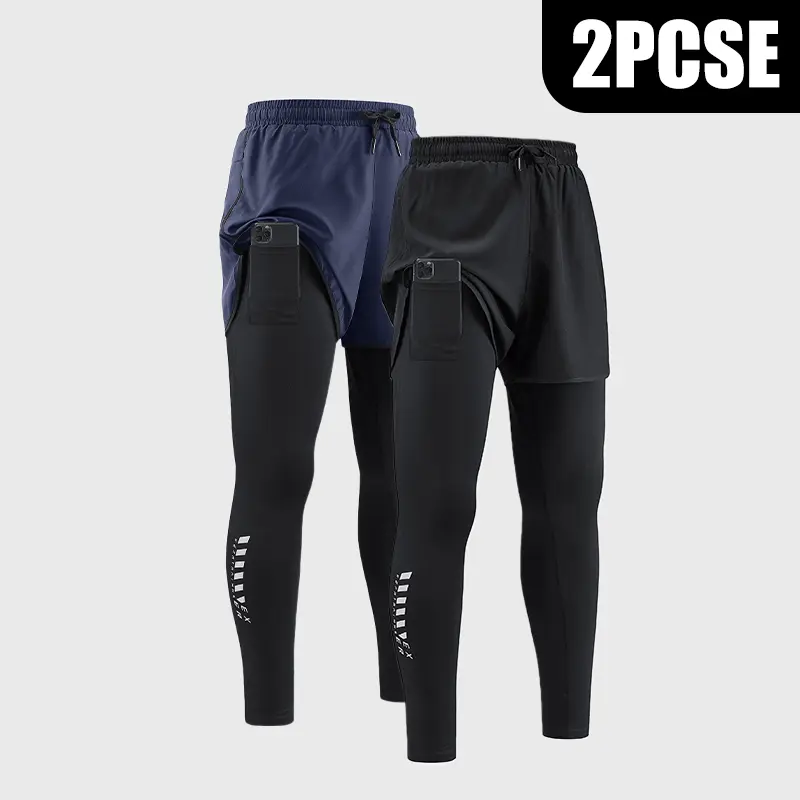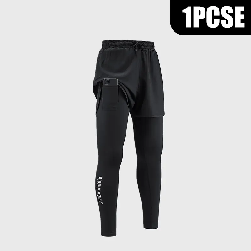 These men's 2-in-1 running pants are designed for all seasons. They feature a breathable, quick-dry fabric that keeps you comfortable. The elastic waistband ensures a snug fit. Built-in phone pocket and towel loop add convenience. Ideal for outdoor activities, these pants are a must-have for your wardrobe.