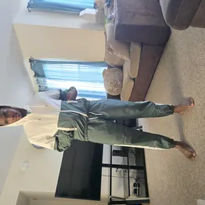 Es s un conjunto de verano o rompe viento, la tela si se ve económica pero para el precio que está es justo.