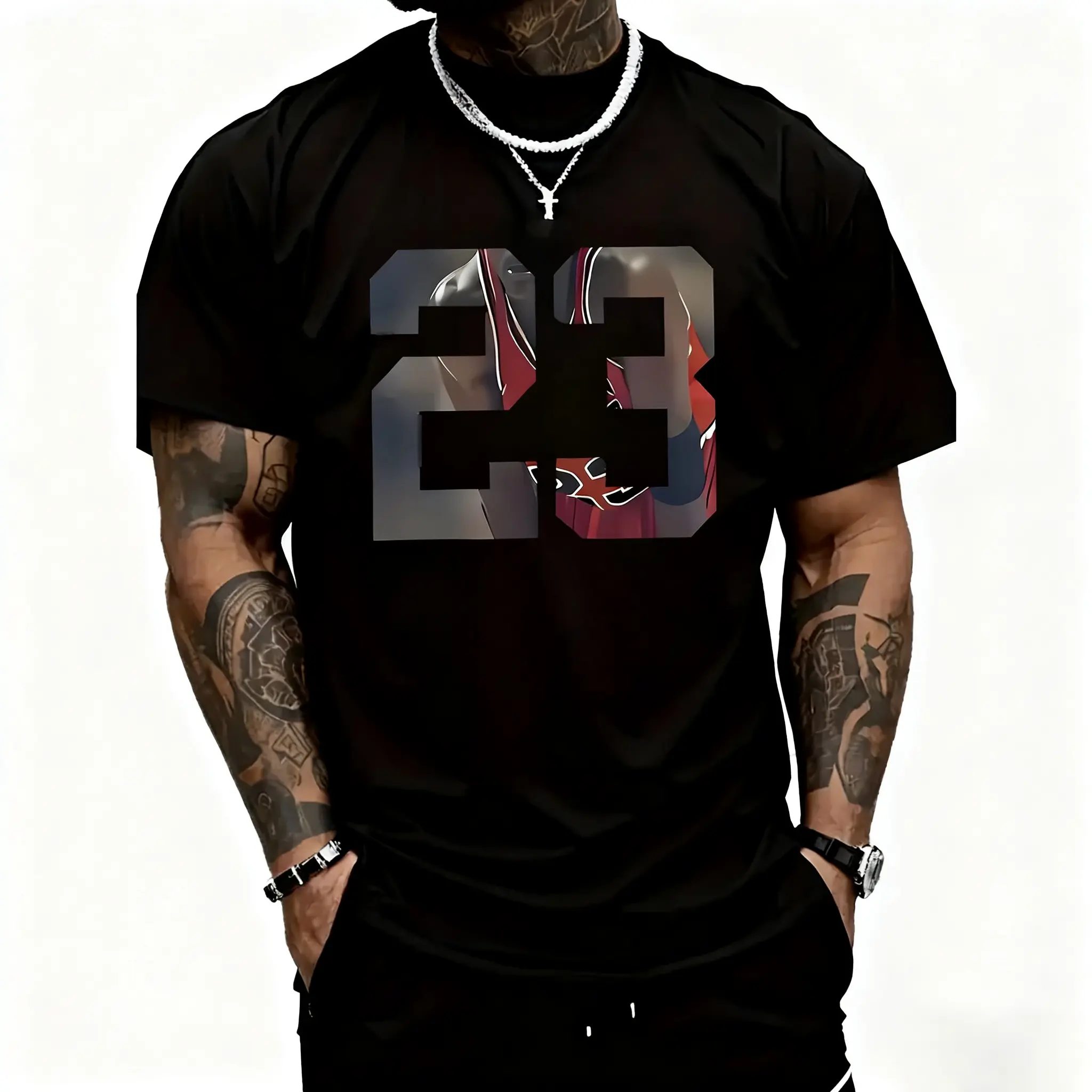Men'S 23 Graphic Printed T-Shirt, Casual Short-Sleeved Round Neck T-Shirt, , Round Neck, Casual And Fashionable, Trendy And Versatile, Comfortable And Breathable, Machine Washable, Suitable For All Seasons Fabric Menswear Seamless Smooth