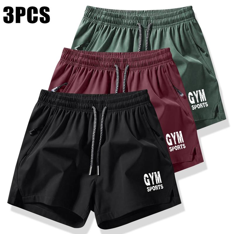 Men's 3-Pack Solid Color Drawstring Pocket Shorts, Summer Casual Quick-Dry Elastic Waist Drawstring Shorts with Zippered Pockets, Durable Comfort for Gym and Outdoor Leisure Activities Breathable Drawstring Jogger Shorts Zipper Athletic Shorts quick-dry c