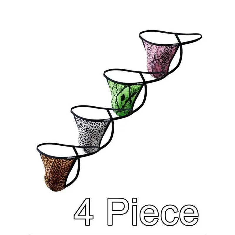 5. Men's 4pcs Sexy Leopard Print G-String Thong, Breathable Comfortable Snakeskin Printed Underwear for Daily Wear, Fashion Men's Underwear for All SeasonsGift