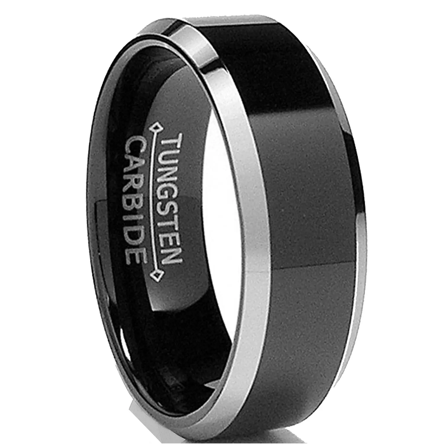 This beautiful Black tungsten carbide ring is 8MM in width and Comfort fit. It is all high polish with beveled edges. All of our Tungsten rings arehypoallergenic. Due to the hardness of the metal, these rings can be laser engraved, but not hand engraved. Comes with a complimentary jewelry ring box.