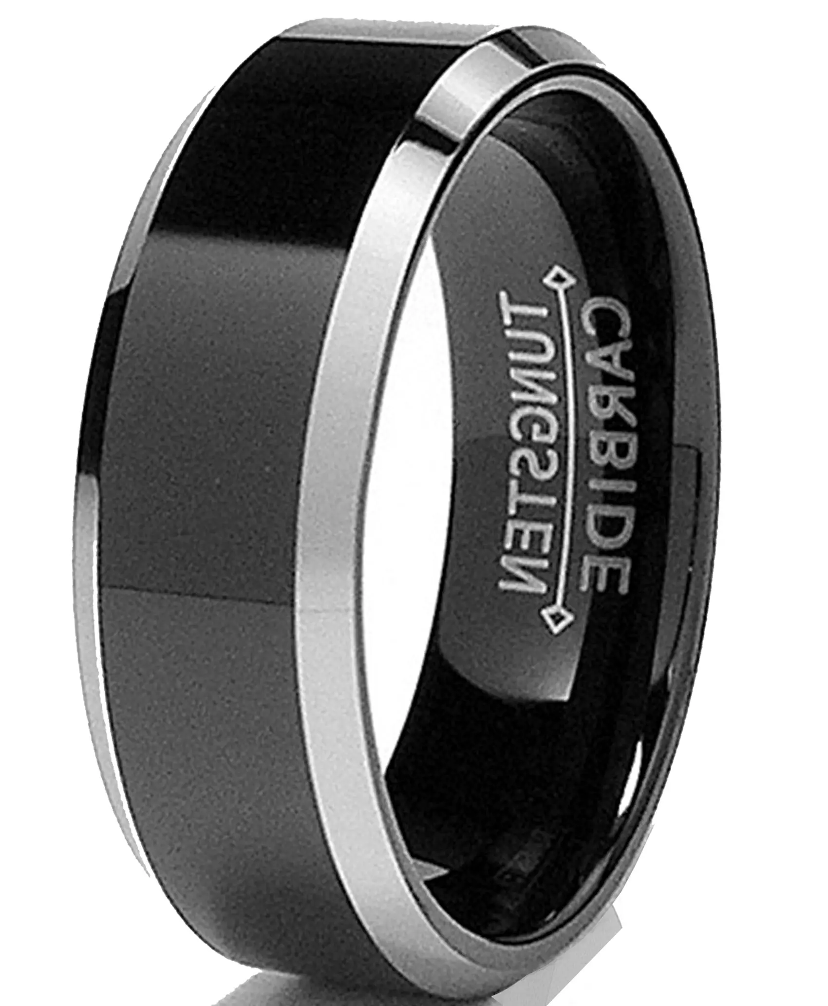 5. Men's 8MM Flat Top Two Tone Black Tungsten Ring Wedding Band Sizes 5 to 15