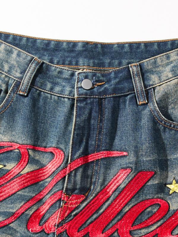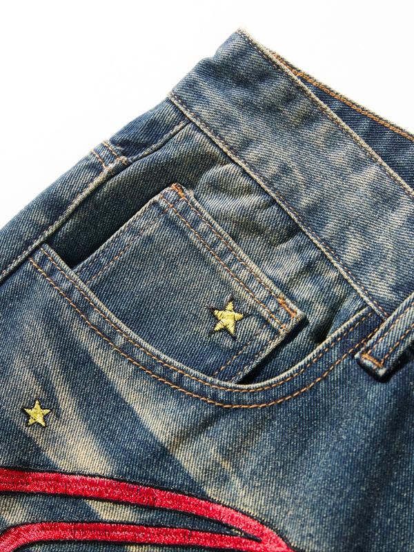 5. Men's American Vintage Washed Embroidered Jeans, Loose Straight Leg Pants, Trendy Embroidery Craft, Casual Versatile Gift Recommendation