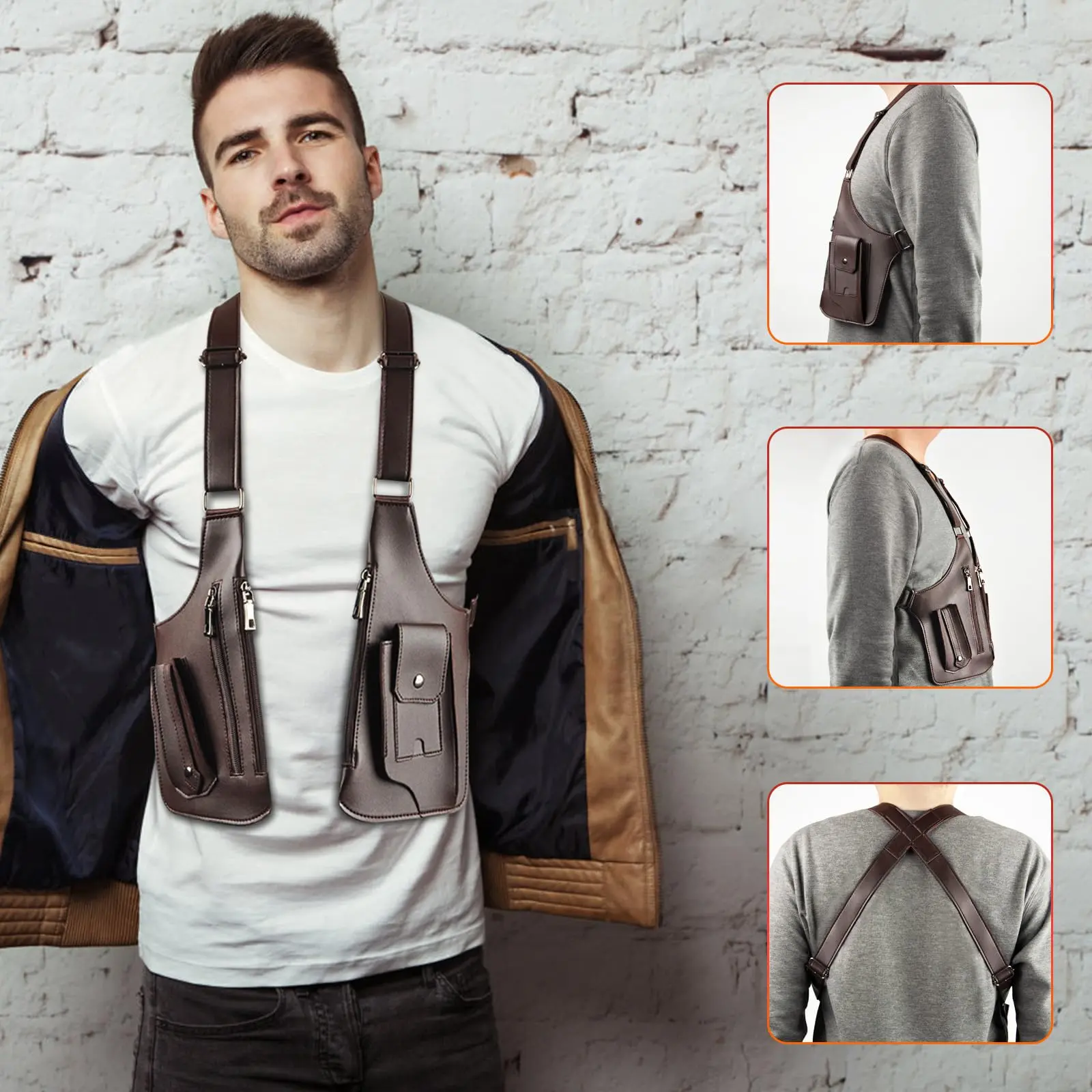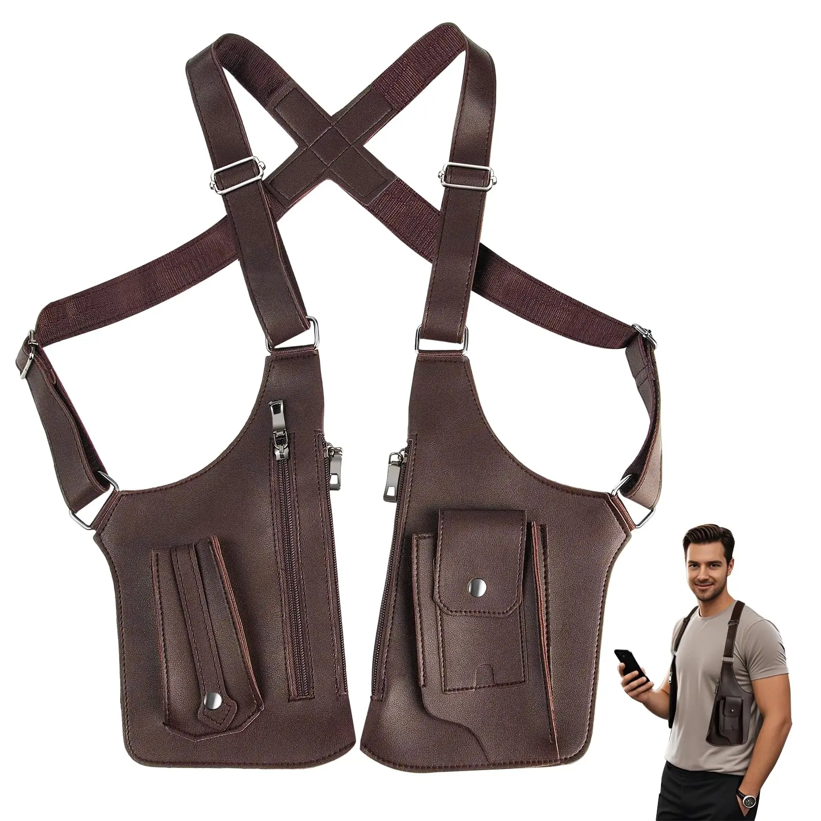 Really good quality and exactly like the pictures. It’s NOT a gun holster — it’s just a multi-pocket chest bag. Comfortable to wear, fits well, and holds my phone, wallet, and keys perfectly.