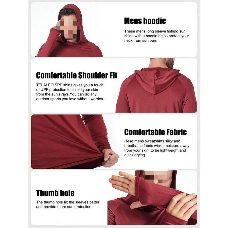 🌞 Men's Athletic Hoodies Set ✨ 5 Pack Men's Athletic Hoodies are perfect for hiking and outdoor activities. These long-sleeve shirts offer UPF SPF UV sun protection. They are lightweight and feature thumbholes for convenience. The hooded fit and regular style ensure comfort. Absorbs sweat, is breathable, and quick-drying. Ideal for fishing and other outdoor adventures. 📏 Product Details 🧶 Material & Care