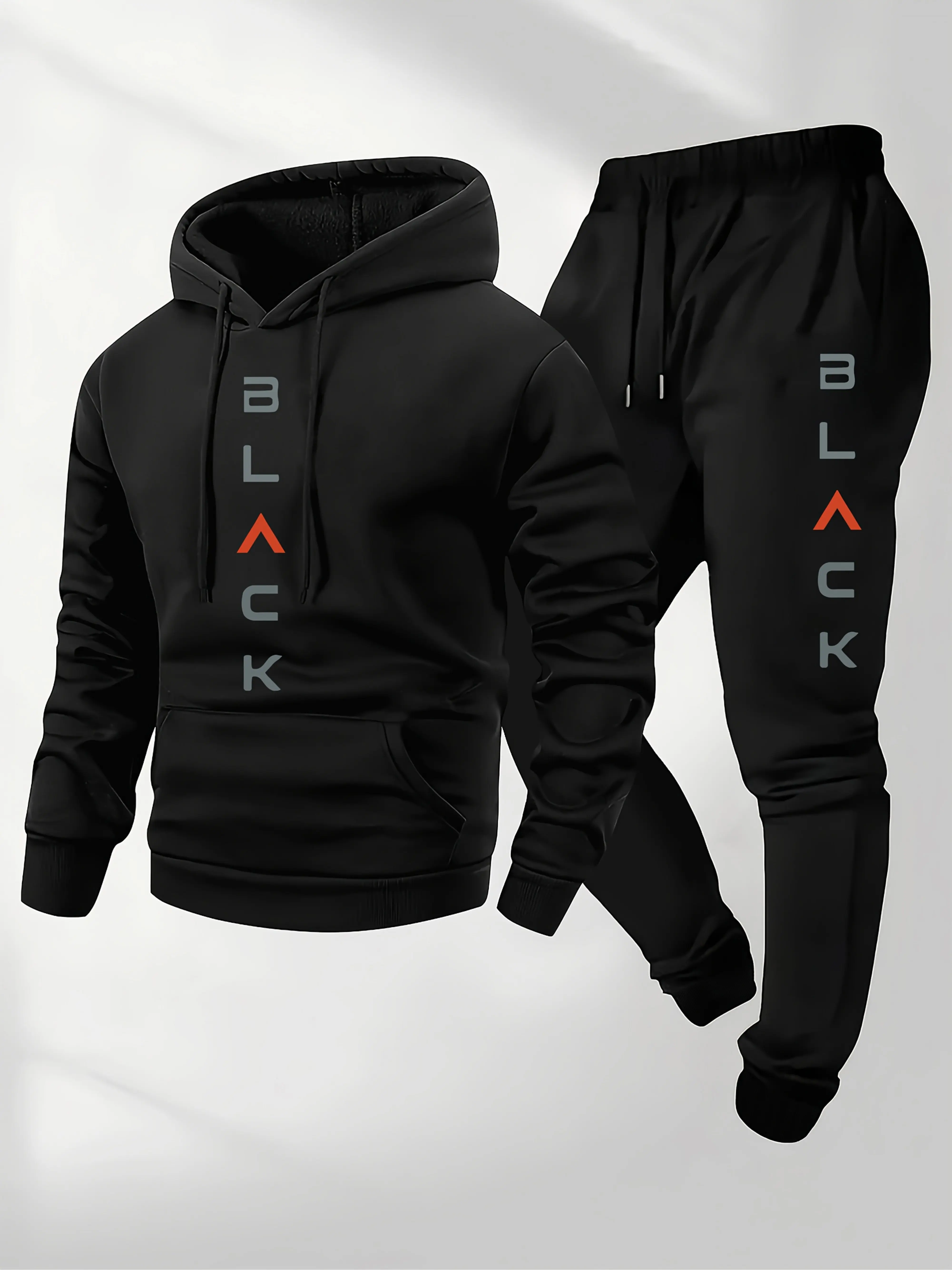 Men's autumn and winter set, including hooded sweatshirt, fashionable jacket, trendy American street style printed top and pants two-piece set Athletic Activewear Tracksuits Sportswear Athleisure Sweatsuit