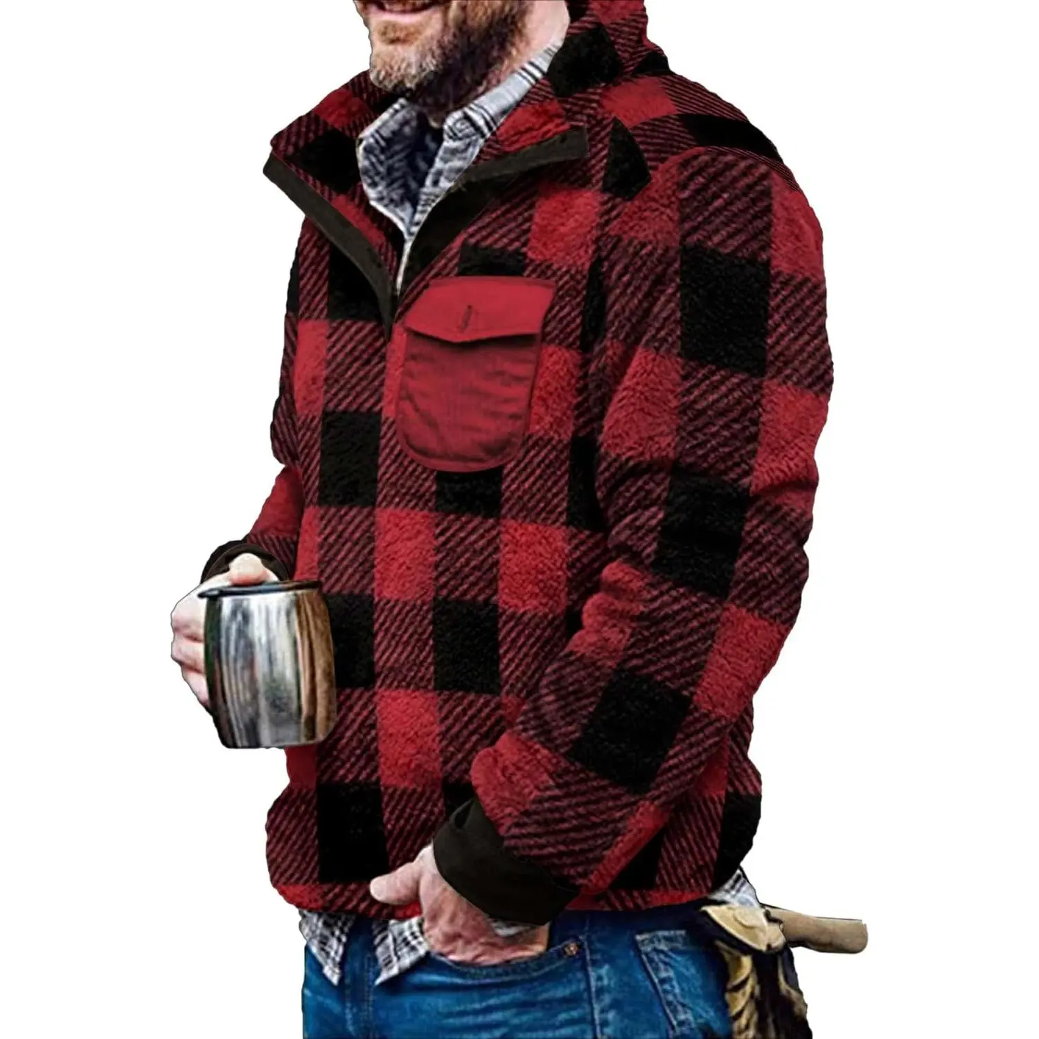 Cozy lightweight sherpa fleece sweatshirt for cold days & nights, mens fleece jackets perfect for fall, winter, and spring weather seasons, unisex and works well for anyone who needs a warm light jacket.