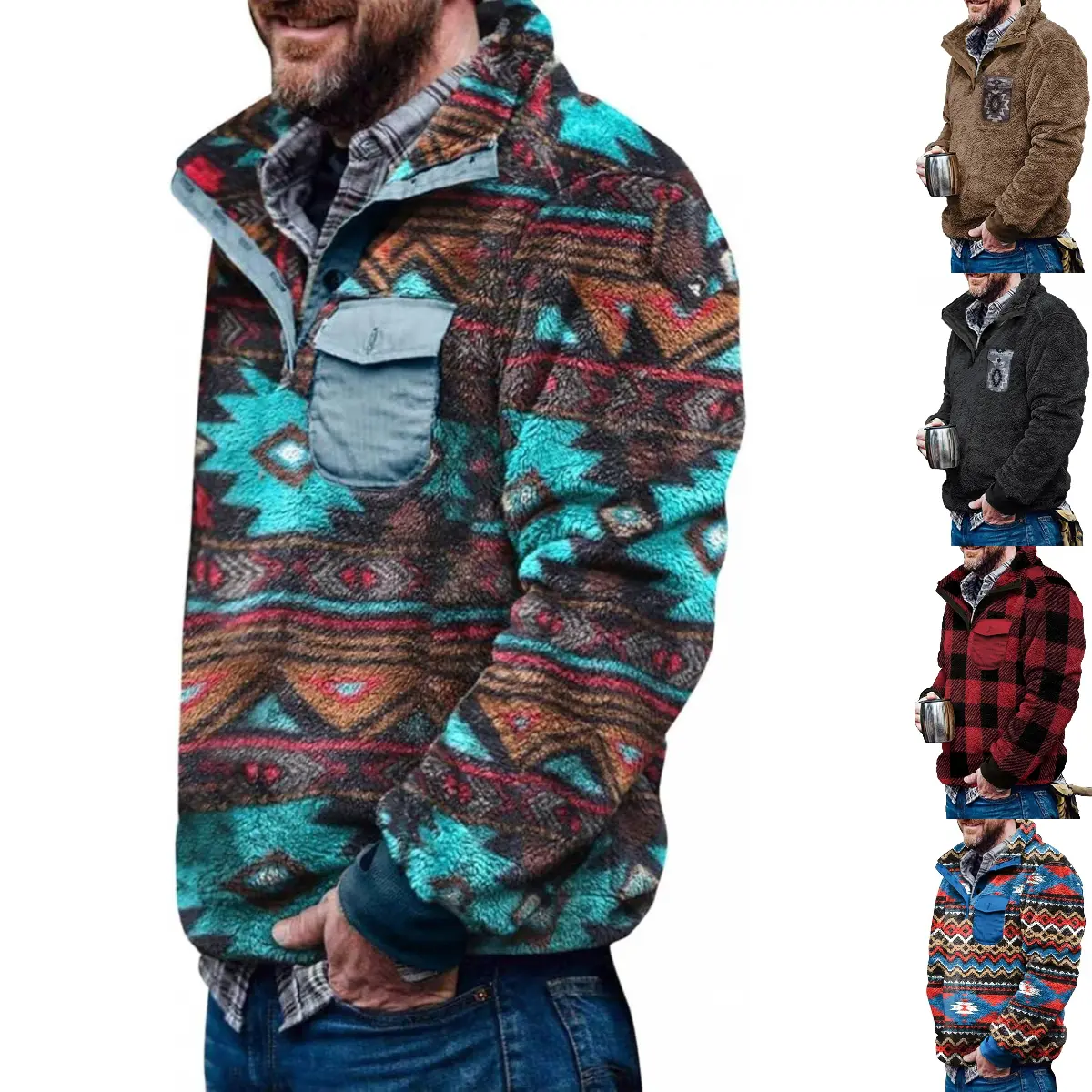 Mens Aztec Fleece Jackets