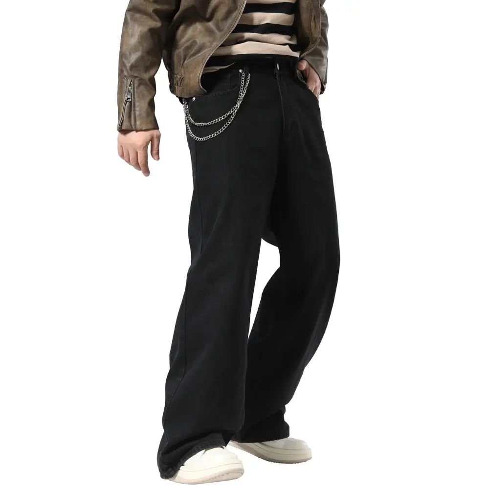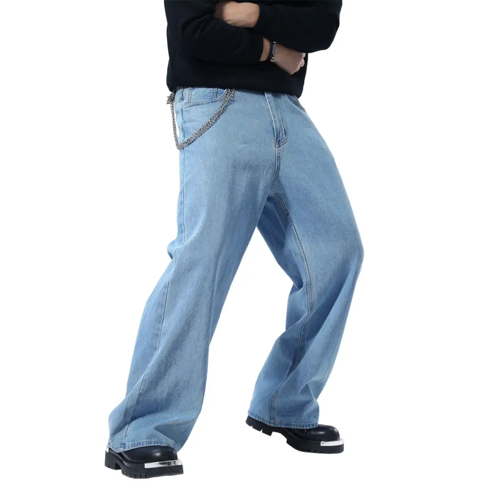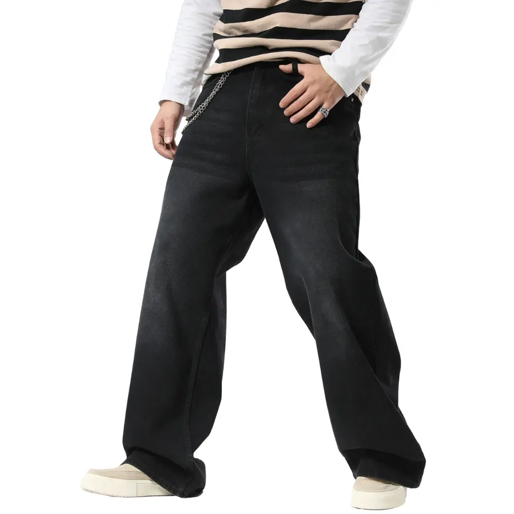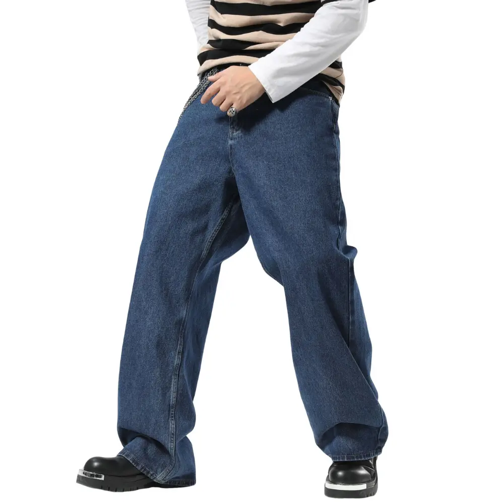 Plaid&Plain Men's Baggy Jeans – Casual Wide Leg Denim Pants B01 | Y2K Vintage Streetwear | Relaxed Fit for Everyday Comfort and Skateboard Style