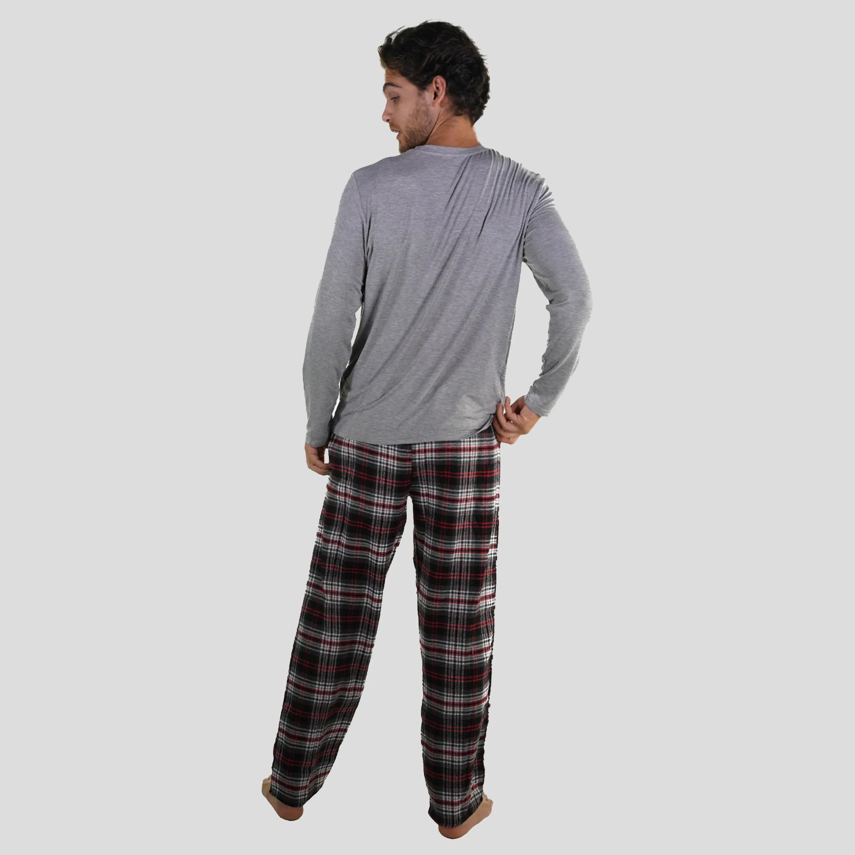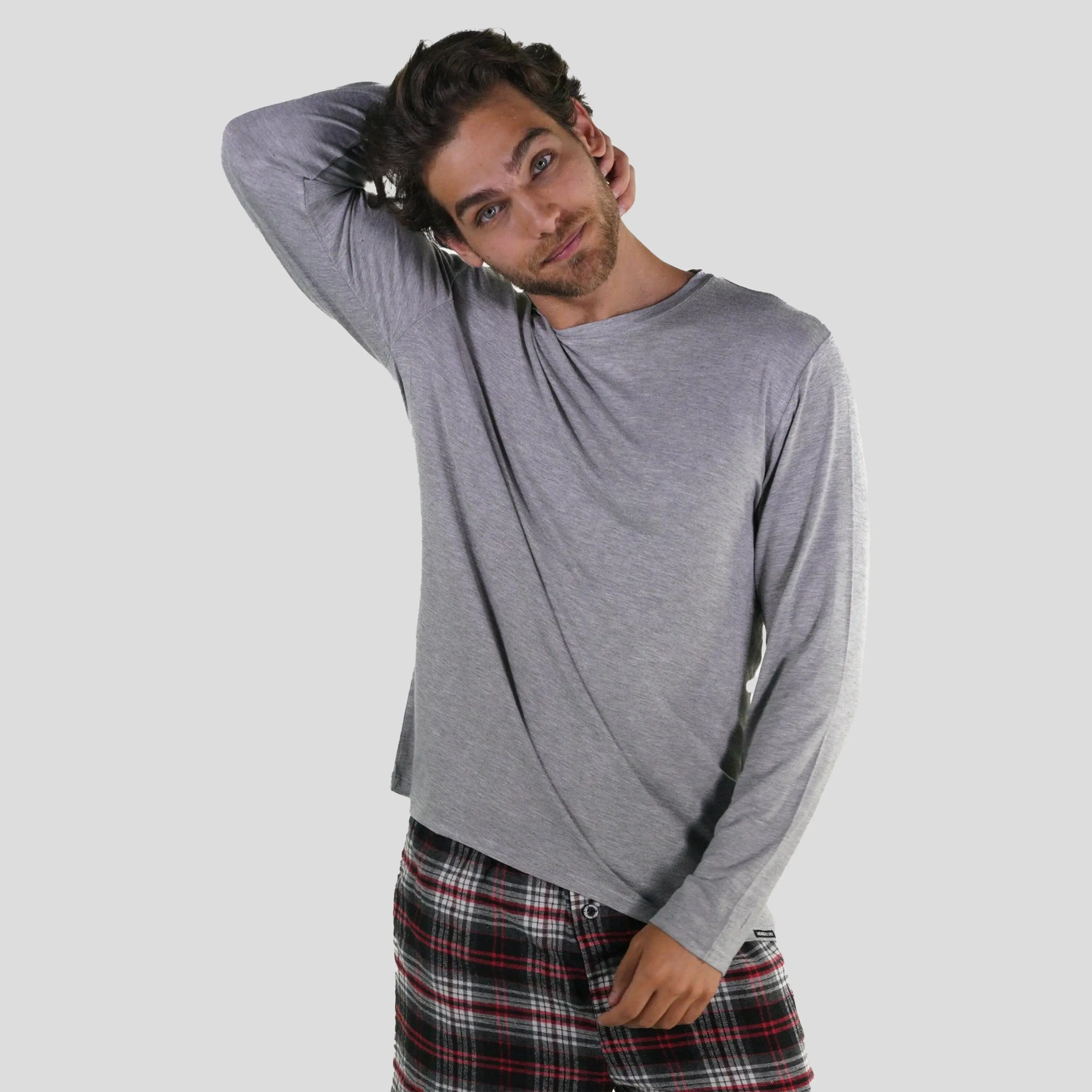 5. Men's Bamboo Rayon Long Sleeve Knit Sleep Shirt - Grey - FINAL SALE Loungewear Menswear Pajama Nightwear Basic Relaxed Fit Stretch Stylish