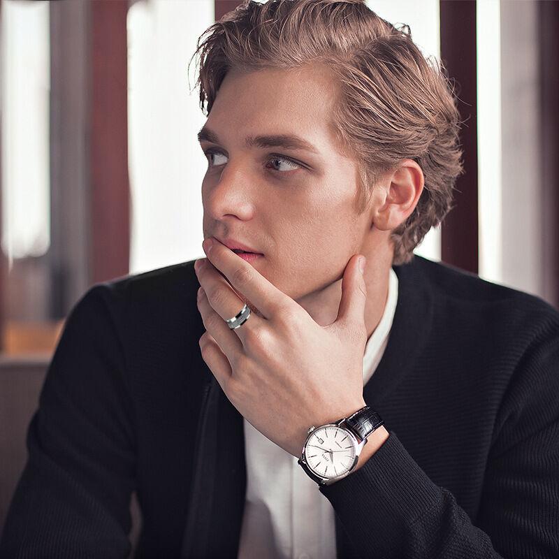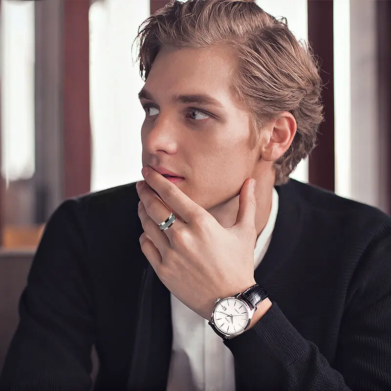 5. Jeulia Imitated Meteorite Titanium Steel Men's Band Anniversary Birthday Wedding Engagement Gift