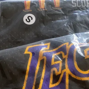 Not just a fashion statement but also functional attire for basketball activities and sports events. Available in sizes S to 2XL Combines black with gold and purple accents to provide a visually appealing look suitable for basketball enthusiasts. @Team Gear #basketballjersey #jersey #mamba #kobe #holidayhustle