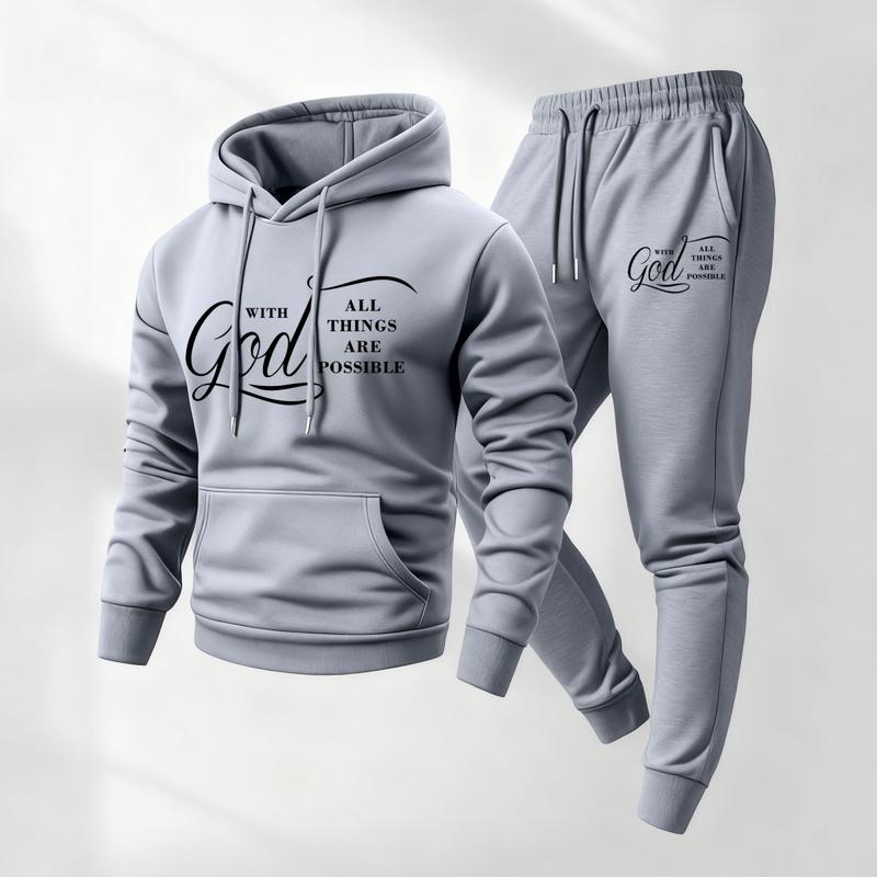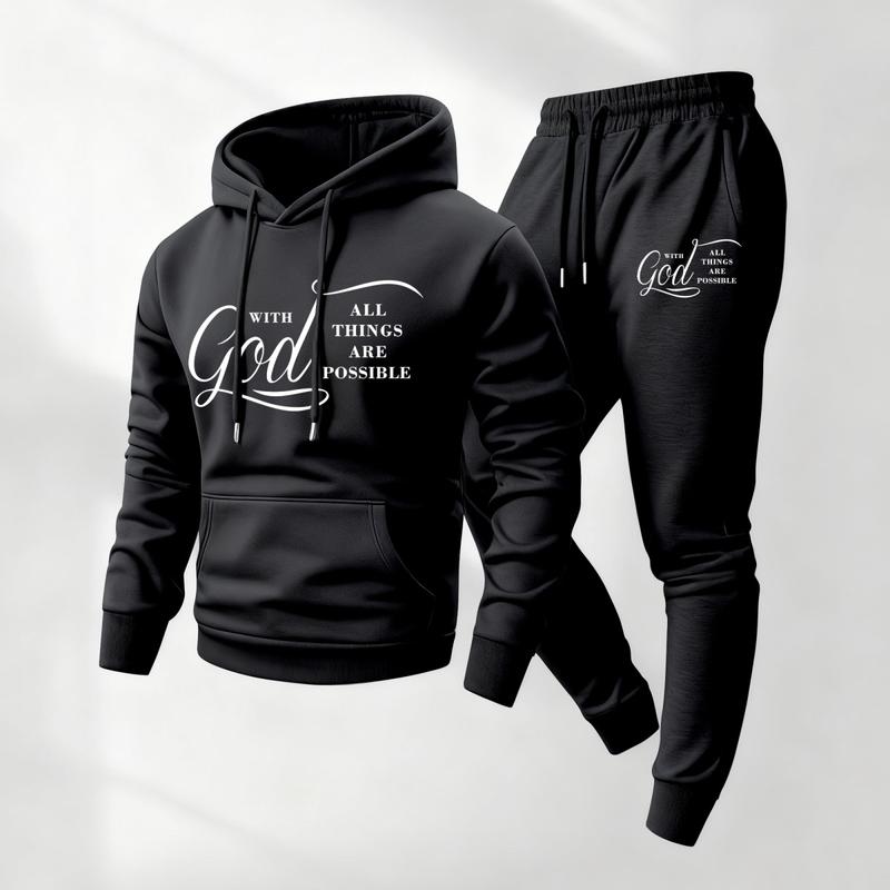 5. Men's The Bible Print Hoodie and Drawstring Sweatpants Set, Menswear, Casual Athletic Long Sleeve Hooded Jacket & Trousers for Fall & Winter, Men's Clothing for Daily Wear, Sportswear Indoor Outdoor, Tracksuit, Athleisure Summer Clothes