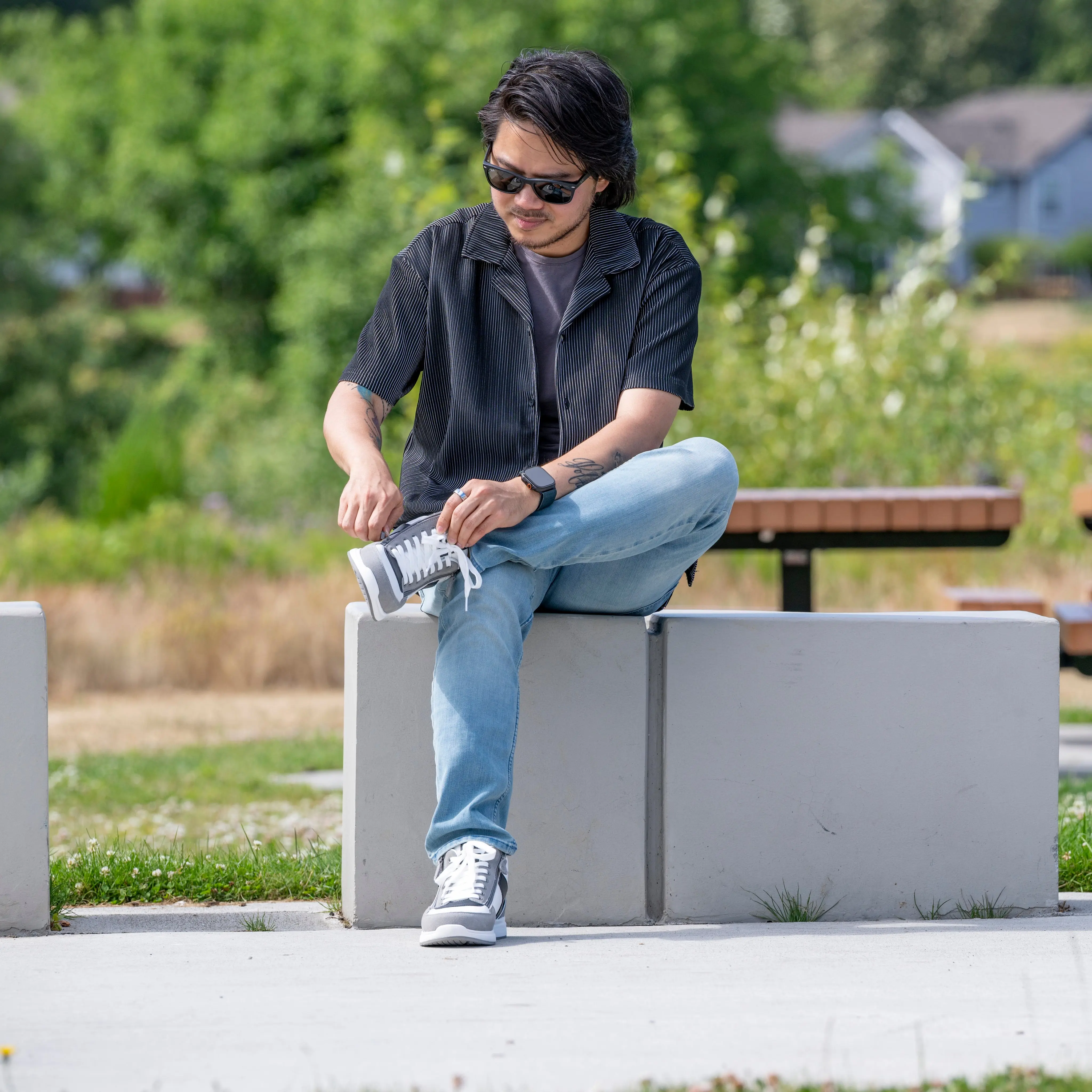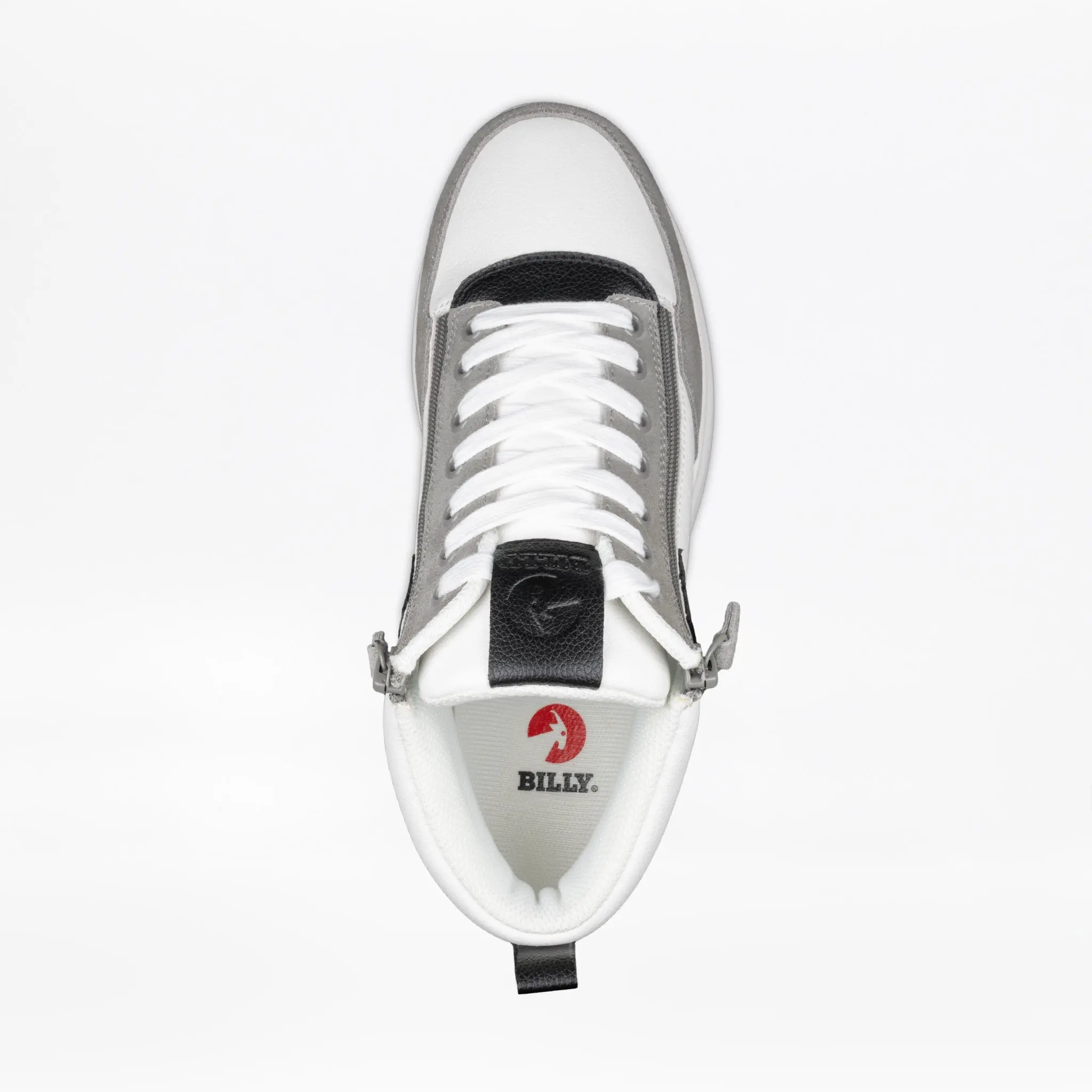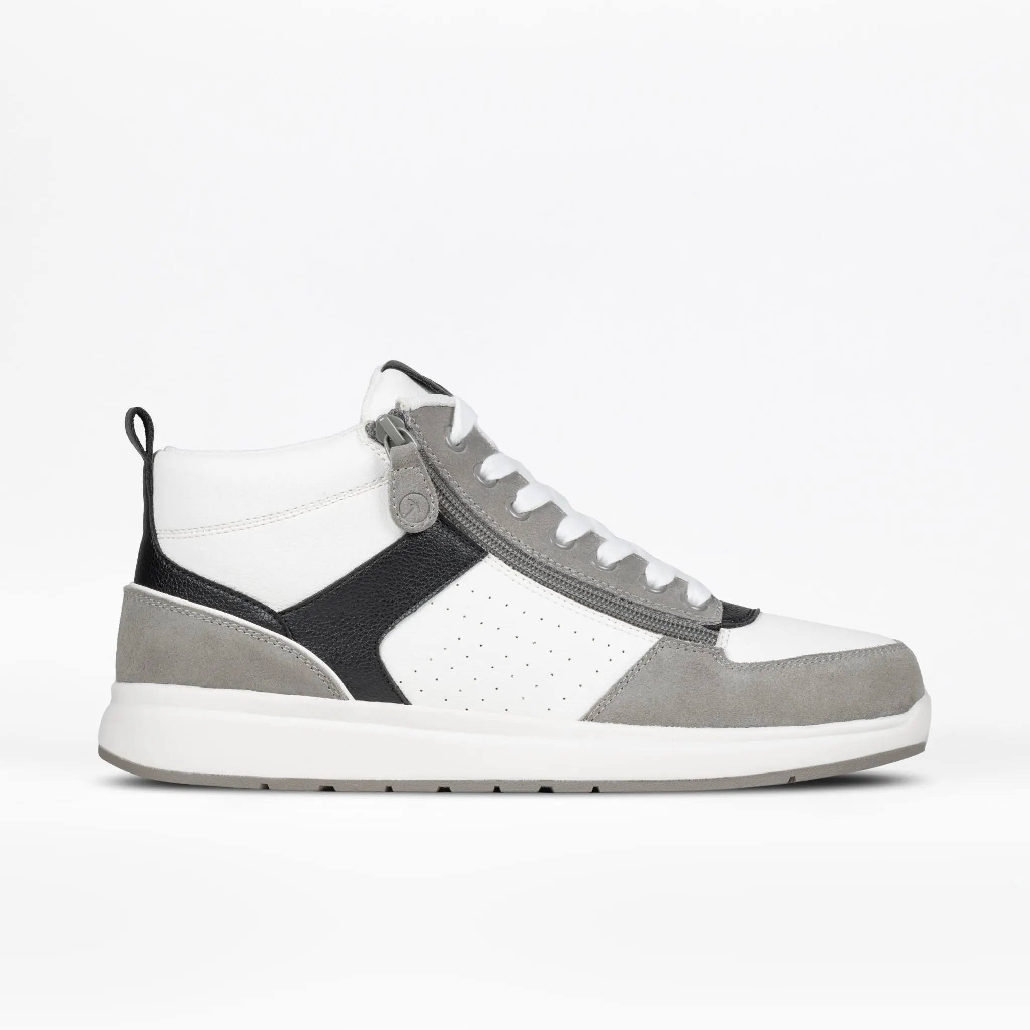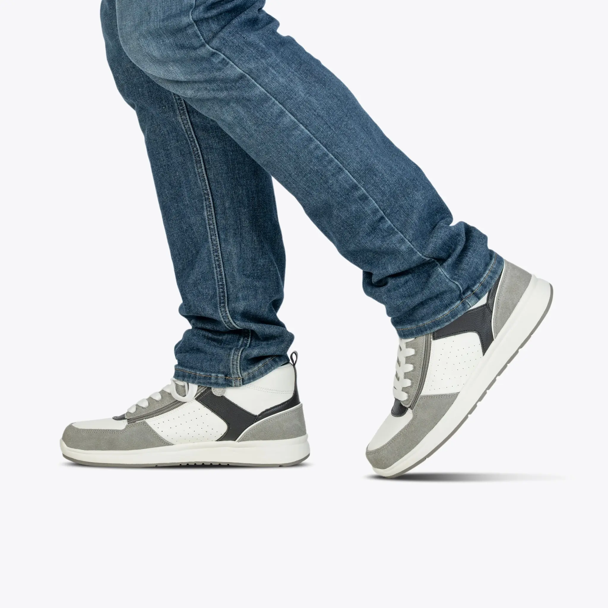 Crafted from genuine leather and suede in a sleek black and charcoal colorway, this shoe offers a premium, modern look. The unique double zipper design—one on the lateral side and one on the medial side—allows the top to open, providing easy access while ensuring a secure fit. With its durable construction and thoughtful design, the Men's BILLY Comfort DZ High Top combines practicality with style, making it a versatile choice for everyday wear.