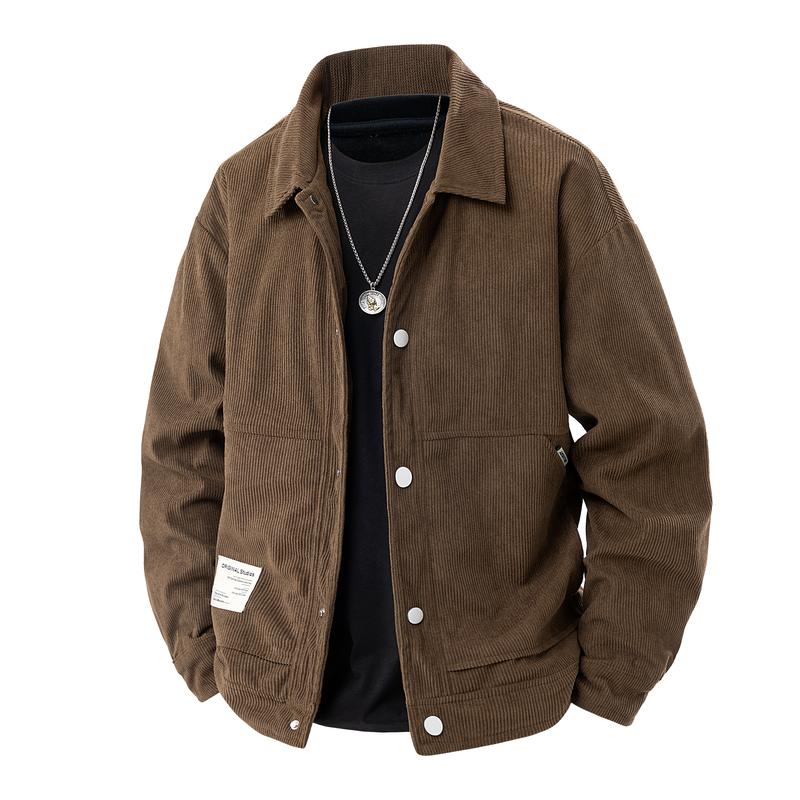 Men's Corduroy Jacket with Silver Color Buttons, Vintage Lapel Style, Includes Pendant Necklace, Casual Streetwear, Medium Size #menfashion #denimjacket #jeanjacket #menswearfashion #menshoodiejacket #mensouterwear #oldnavyjacket #menswearstyle #jacketstyle #womenscoats