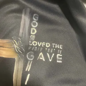 ·Bold Black & Gold Contrast: The matte black base pairs with shimmering gold geometric side panels and a metallic cross graphic printed with the phrase “GOD SO LOVED THE WORLD THAT HE GAVE” for a statement-making look.