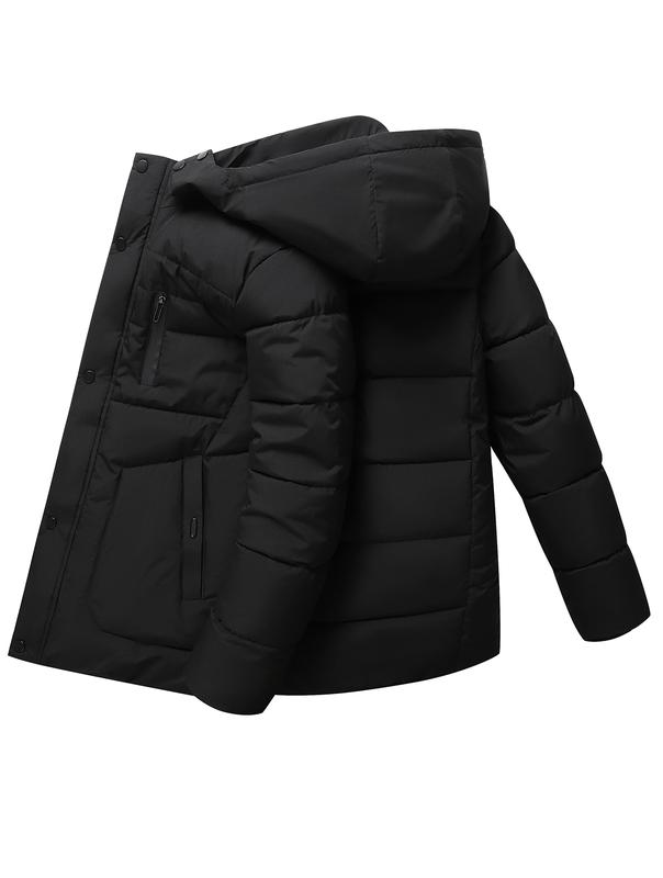 Elevate your winter wardrobe with this versatile jacket. Its simple yet elegant design makes it suitable for various occasions. Stay warm and stylish this season with the men's black hooded puffer jacket.