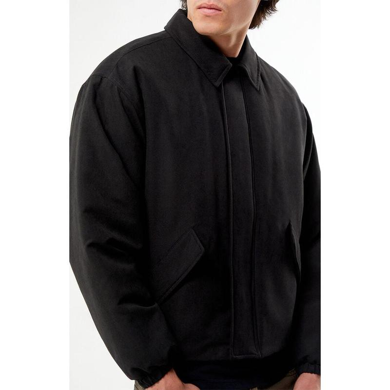 Stay warm and stand out in style with the Black Ninety Puffer Jacket from Pacsun. Boasting a padded body for ultimate comfort and insulation, this jacket includes long sleeves, a collar, a full zipper front closure, and side snap button flap pockets, while elastic cuffs and a hem with pull tabs ensure a snug fit against the chill.
