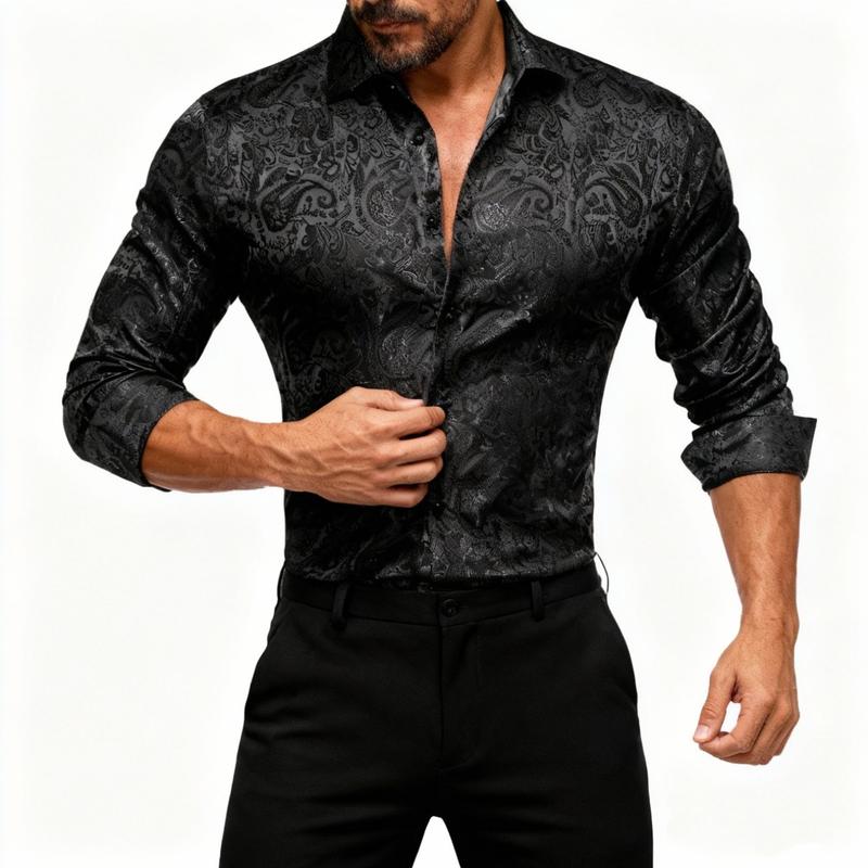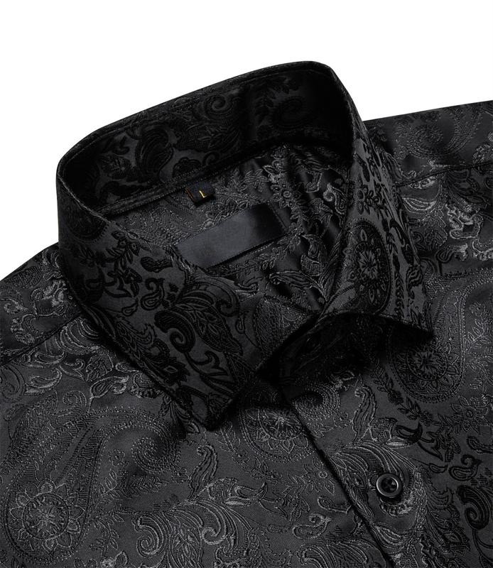 High quality polyester fabric.2000 stitches jacquard woven craft, high-density fabric makes men black button down shirt more practical and wear-resistant,non-shrink, non-deformed,no pilling or fade.