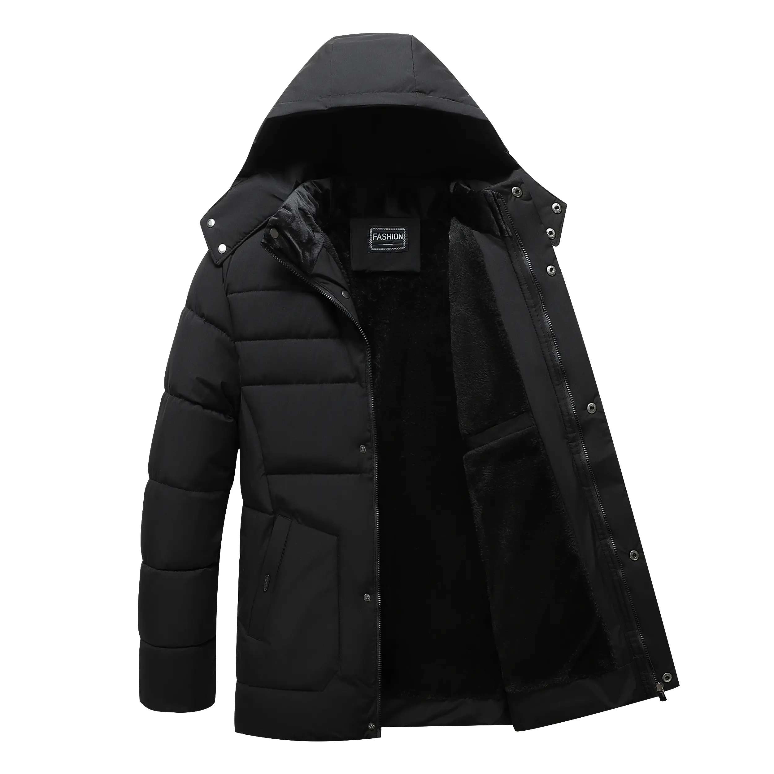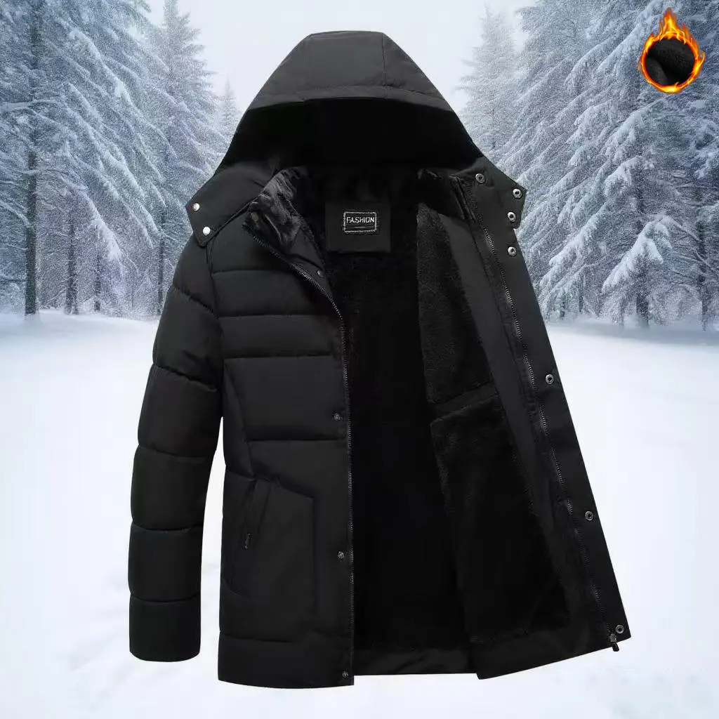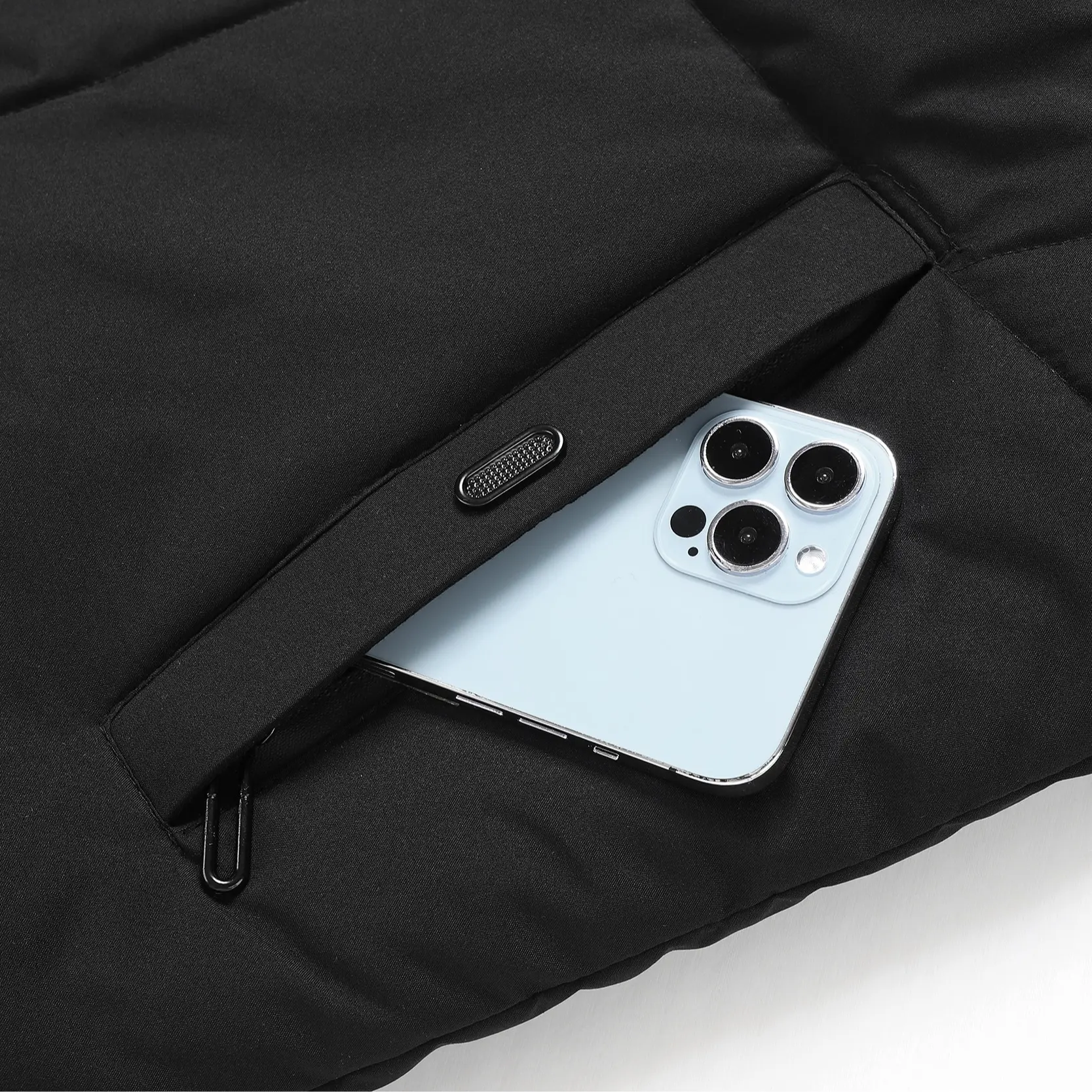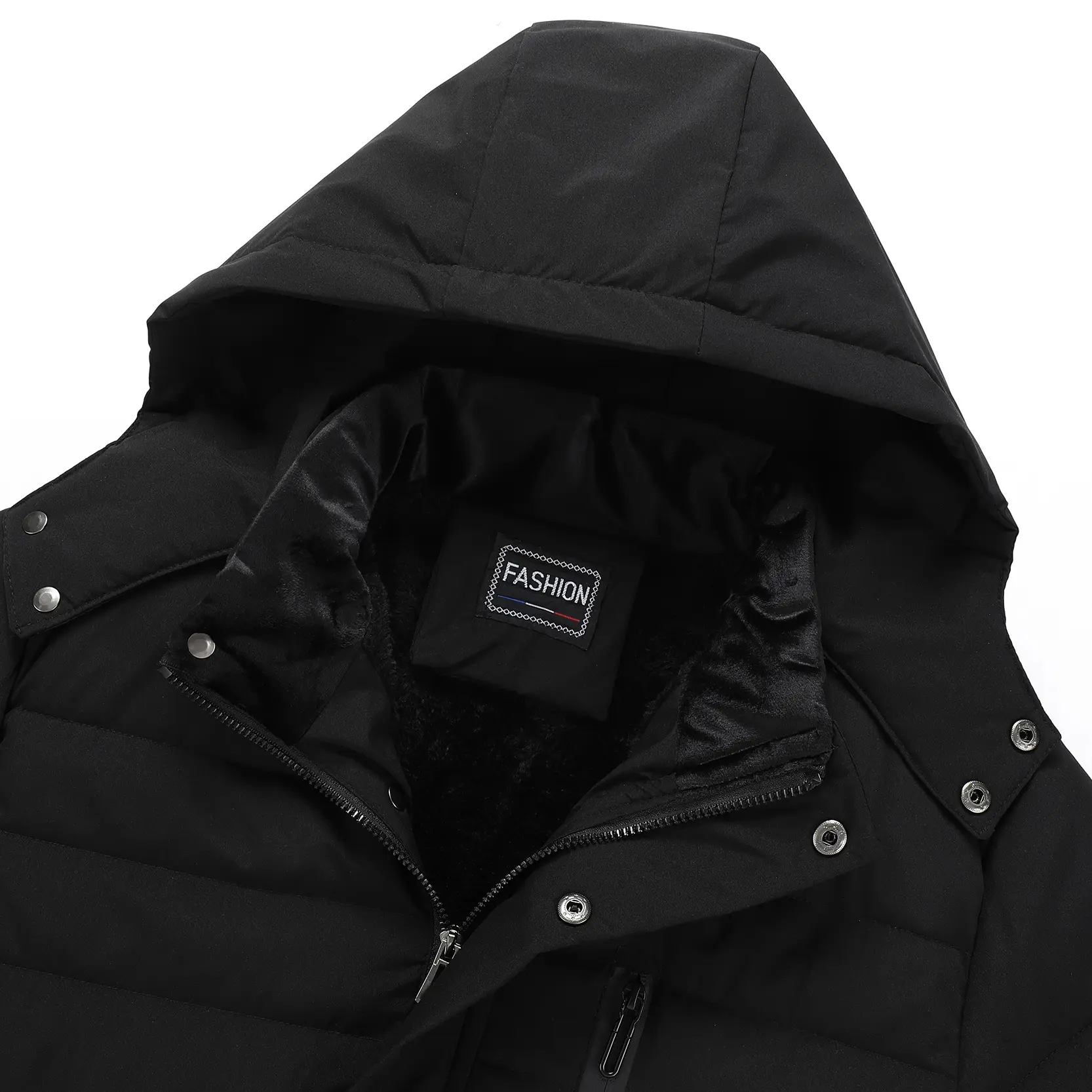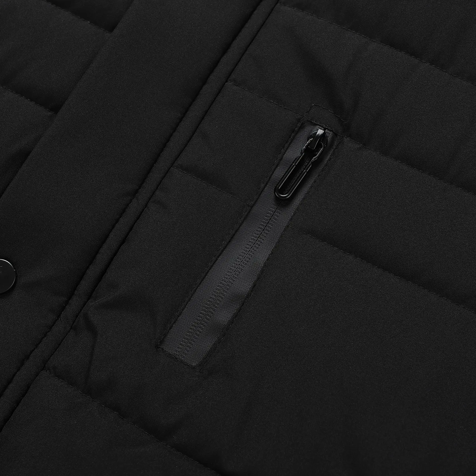 This men's black quilted hooded jacket is a must-have from a fashion brand. It features a thermal lining for warmth and a zip-up design for convenience. The detachable fur hood adds a touch of luxury. Perfect for chilly days, this jacket combines functionality with style.