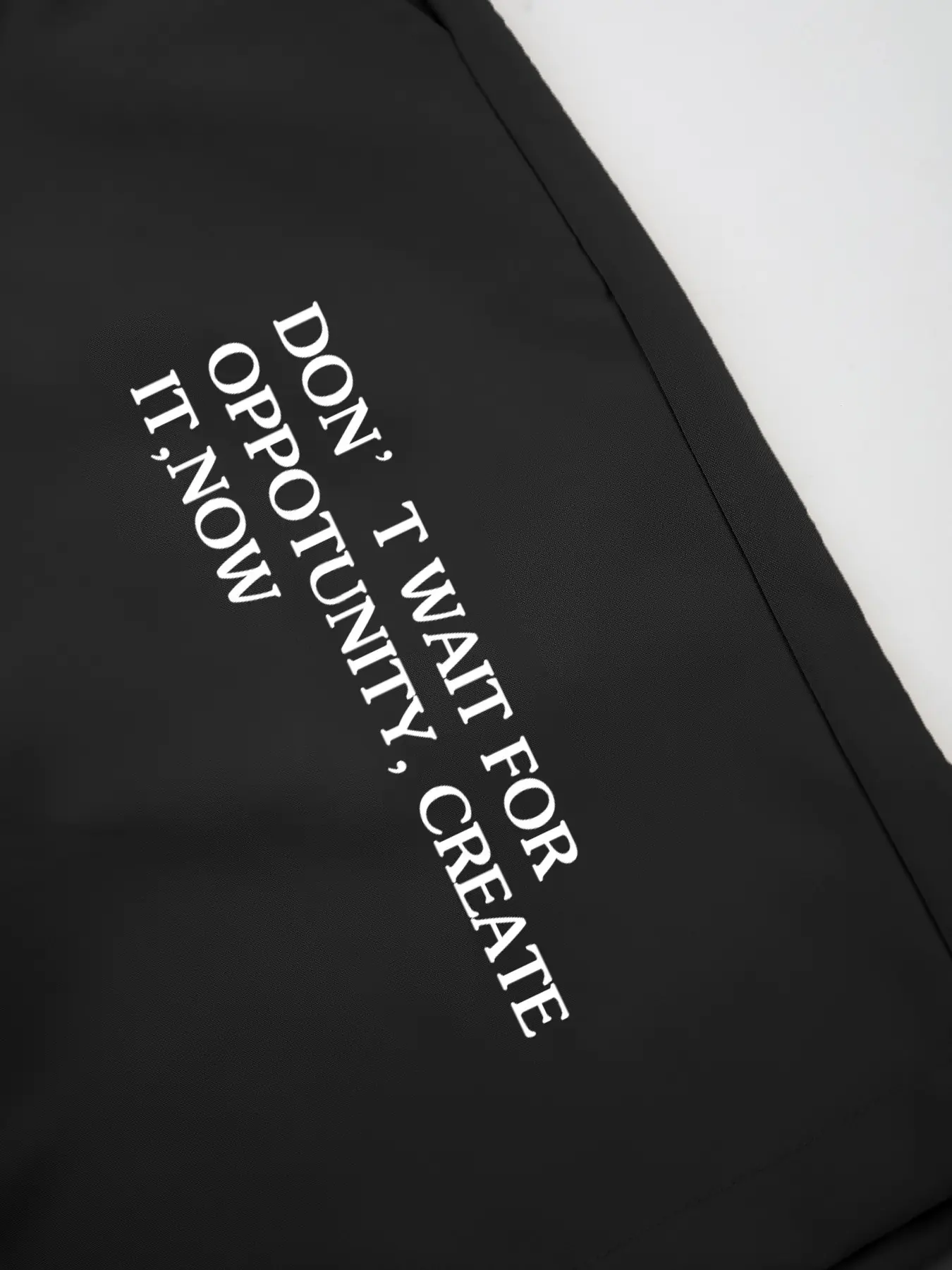 【Graphic Statement】: Features a bold ''DON'T WAIT FOR OPPORTUNITY'' graphic on the short-sleeve lapel shirt.