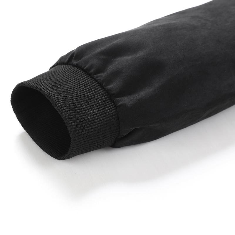Upgrade your wardrobe with this stylish black stand collar zip-up jacket. It offers a modern look with a zip-up closure for easy wear. The ribbed cuffs and hem ensure a snug fit, perfect for everyday wear. Ideal for casual outings, it combines comfort with style. Stay trendy while maintaining functionality.