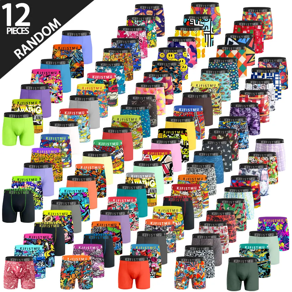 KJFISTMU 12-Piece Men's Boxer Briefs Set Random Styles Designs Solid Colors Prints Colorful Waistbands Striped Designs Fashionable Graffiti Print UnderwearKJFISTMU 12-Piece Men's Boxer Briefs Set Random Styles Designs Solid Colors Prints Colorful Waistbands Striped Designs Fashionable Graffiti Print Underwear
