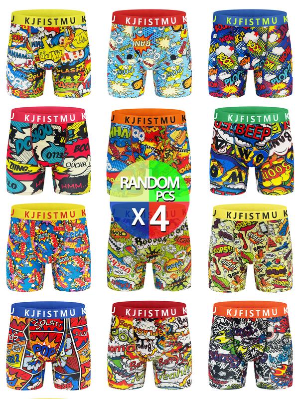 4pcs KJFISTMU Men's Pop-Style Colorful Waistband Athletic Briefs Breathable, Stretchy, Lightweight Men's Boxer Briefs