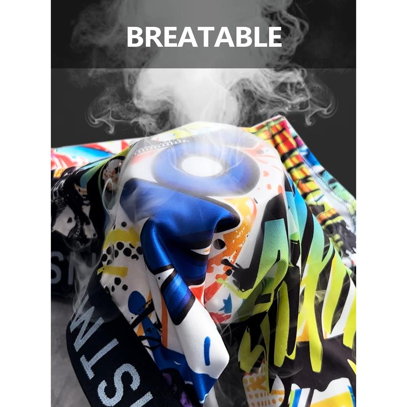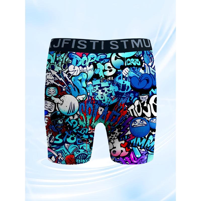 5. 4pcs Men's Boxer Briefs Set with Cool Graffiti Patterns And Stretchy Material, Soft, Comfortable And Breathable, Suitable for Fitness And Daily Wear, Loose Boxers for Men,Lounge Wear, Activewear Essentials, Trendy Underwear, Urban Fashion, Soft Fabric