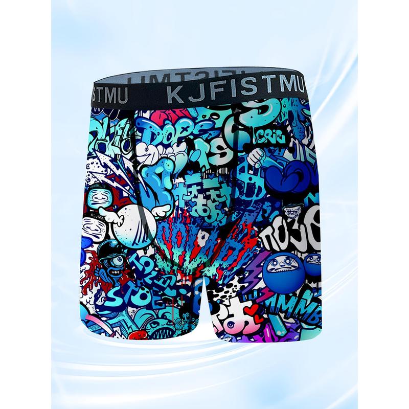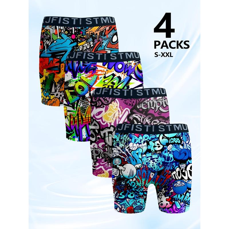 4pcs Men's Boxer Briefs Set with Cool Graffiti Patterns And Stretchy Material, Soft, Comfortable And Breathable, Suitable for Fitness And Daily Wear, Loose Boxers for Men,Lounge Wear, Activewear Essentials, Trendy Underwear, Urban Fashion, Soft Fabric