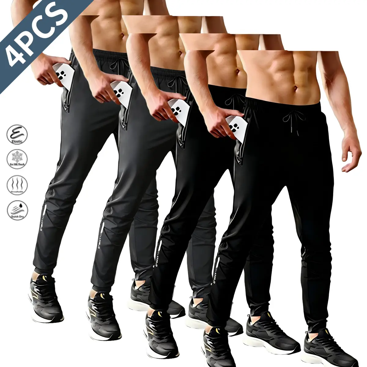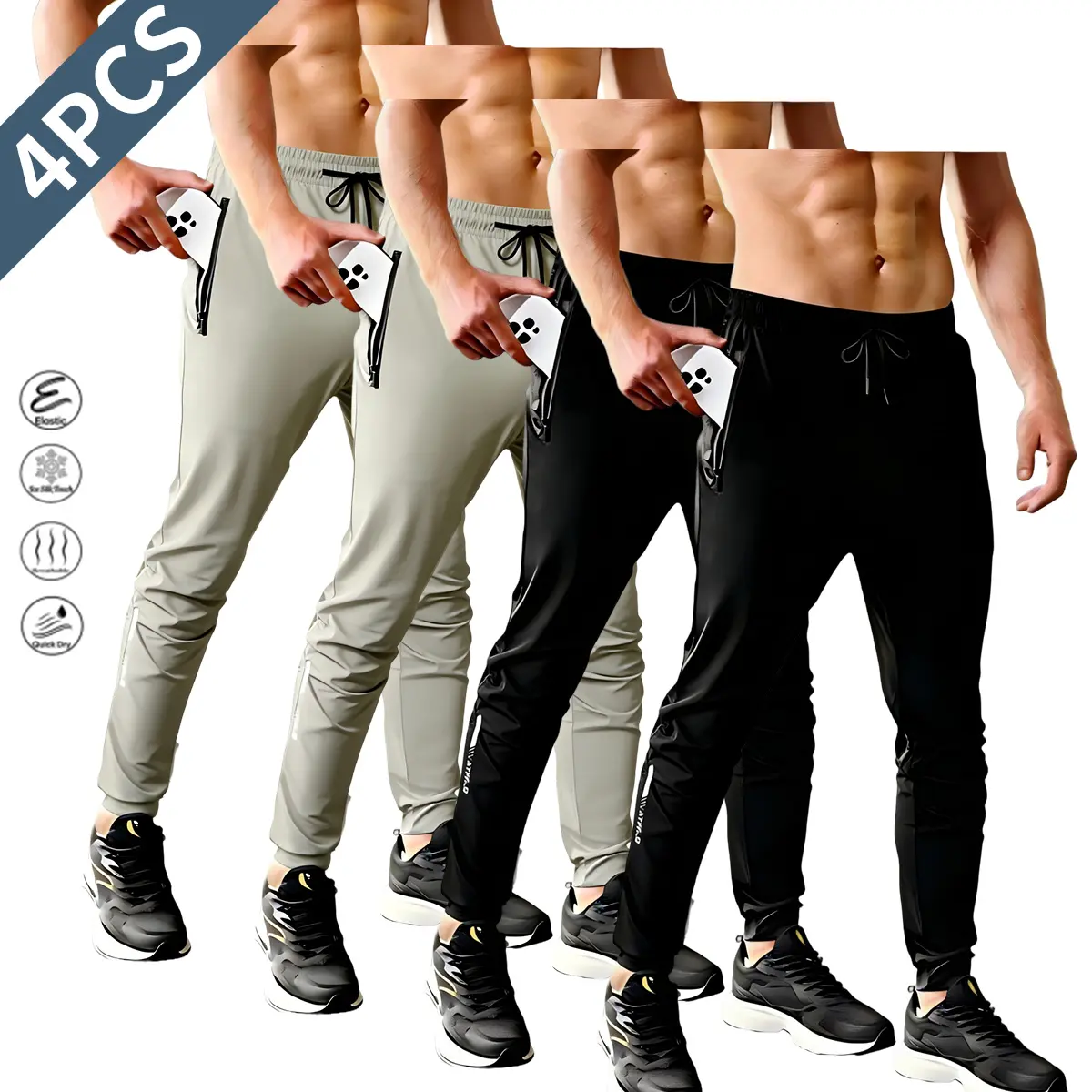 4-Pack Men's Stretch Joggers - Men's breathable ice-feeling high-stretch fabric sweatpants, suitable for daily sports wear | Light and breathable gym wear | Active pants for men, spring and summer fashion choice