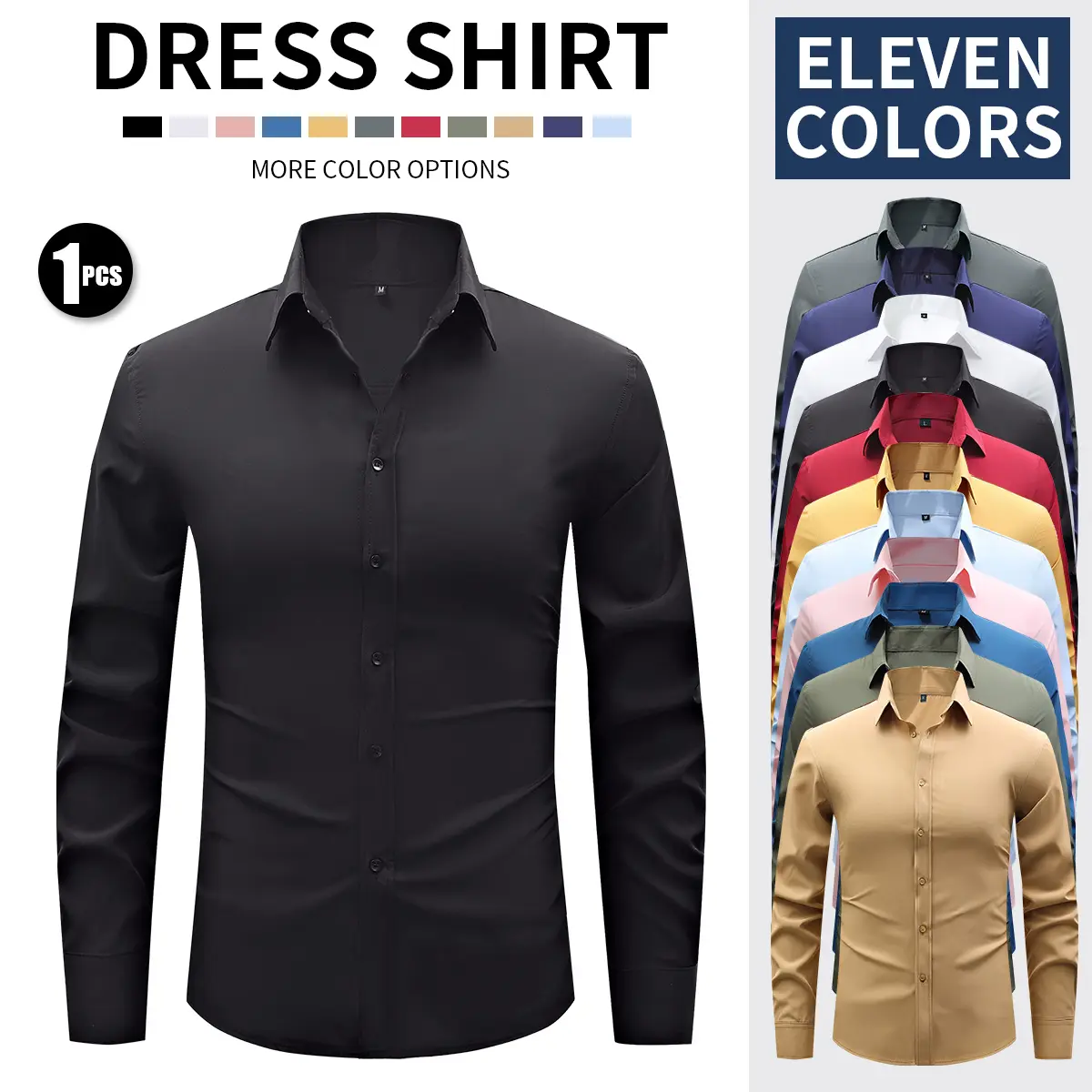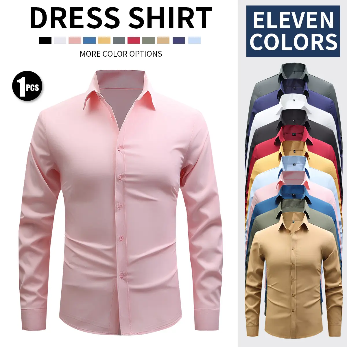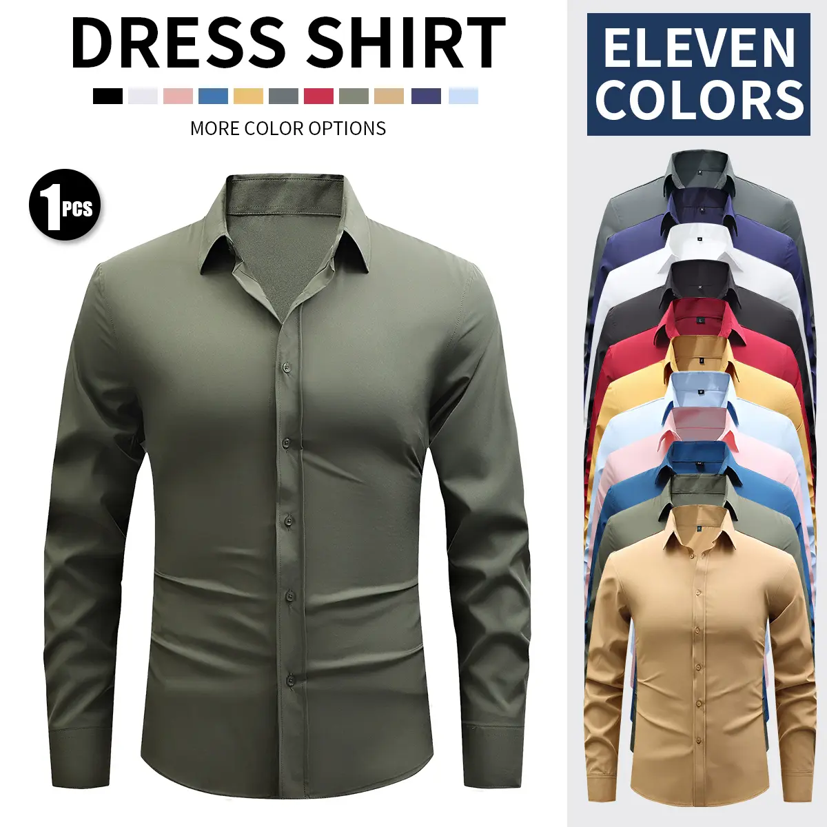 5. New Men's Business Lightweight Long Sleeve Shirt Stretch Wrinkle-Free Ice Silk Cool Dress Shirt