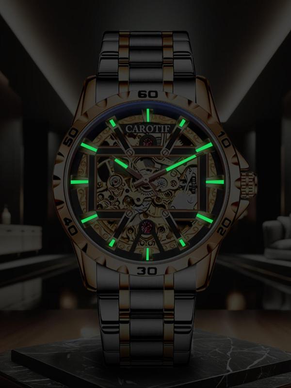 Men's Business Fashion Round Dial Analog Watch, Mechanical Style Watches, Fashion Watch for Party, Daily Clothing Decor, Trendy All-match & Exquisite Watch for Birthday Gift with Box