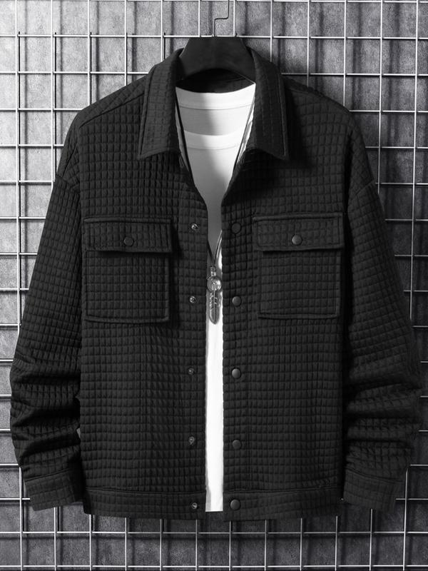 Men's Fashionable Button Front Coat with Flap Pockets, Loose-Fit Thick Fabric Jacket for Fall & Winter, Perfect Outerwear for Any Occasion