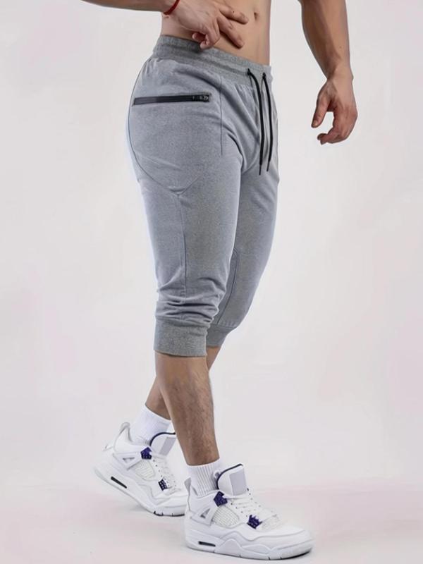 Men's Solid Color Capri Jogger Pants, Casual Comfy Breathable Pants for Gym Workout Running, Men's Bottoms for Daily Wear, Casual Comfy Joggers, Jogger Sweatpants