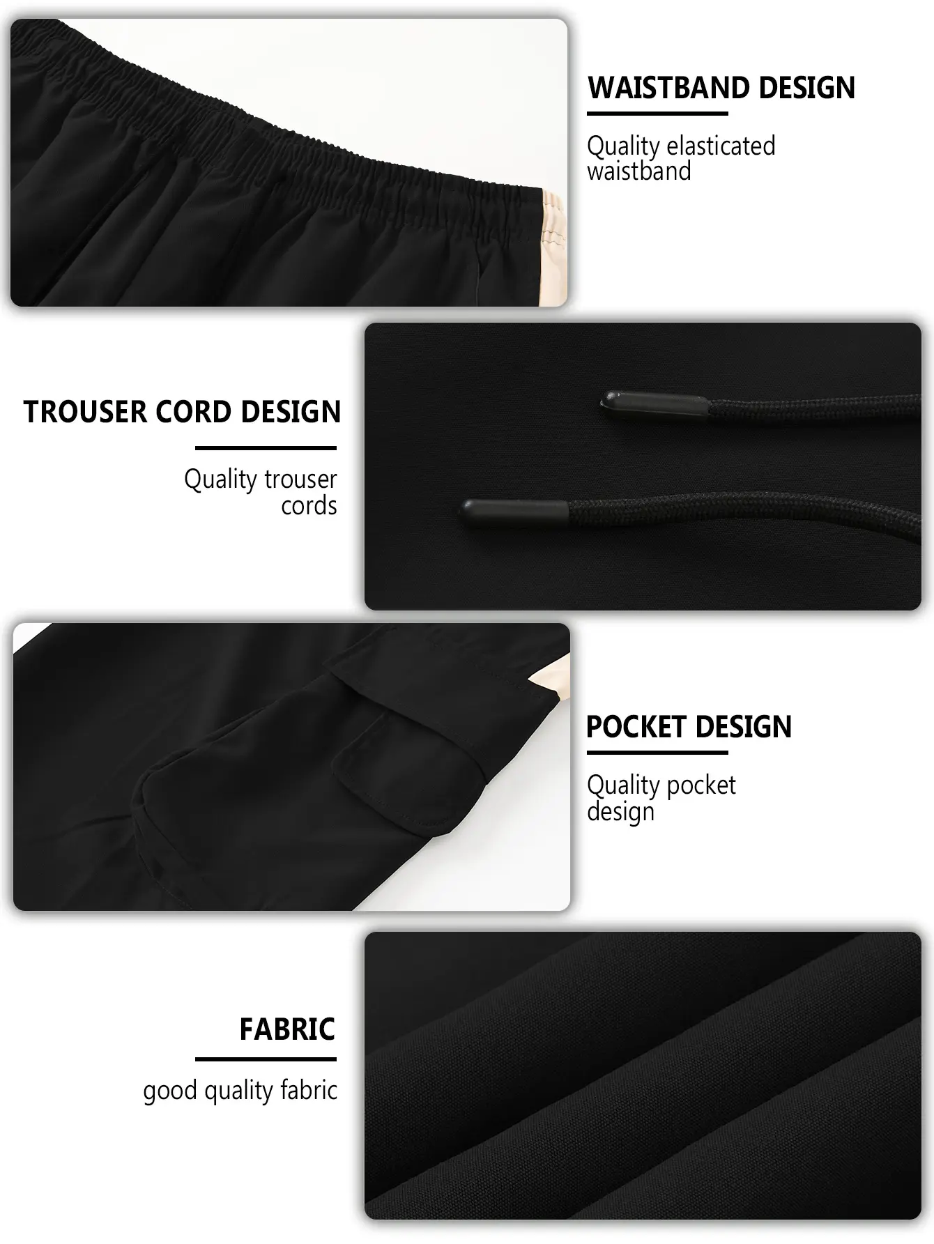 Super cozy and breathable it says men pants but I bought them for myself cause they seem unisex plus deep pockets will note the side pockets aren’t Velcro so they won’t close but its perfect for my job cause I’m always reaching in my pockets and always on the move