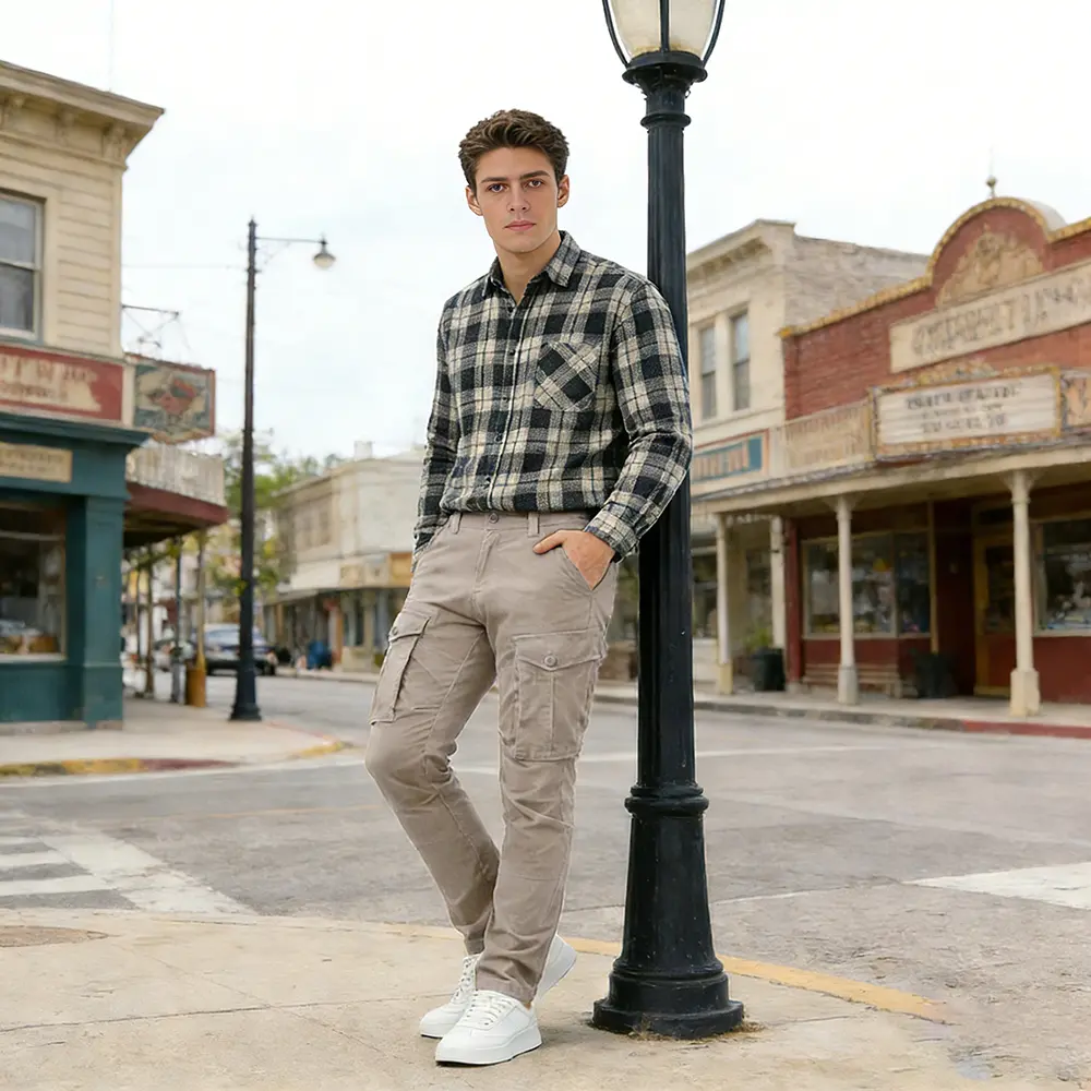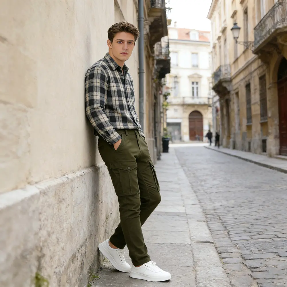 Cargo pants Plaid&Plain para hombre. Corte slim fit, cómodos y con rodillas articuladas para moverte sin problema. Tienen ese look moderno que queda bien con todo. Son ligeros, versátiles y perfectos para el día a día. #enviogratis #blackfriday #cargo #menstyle #oferta
