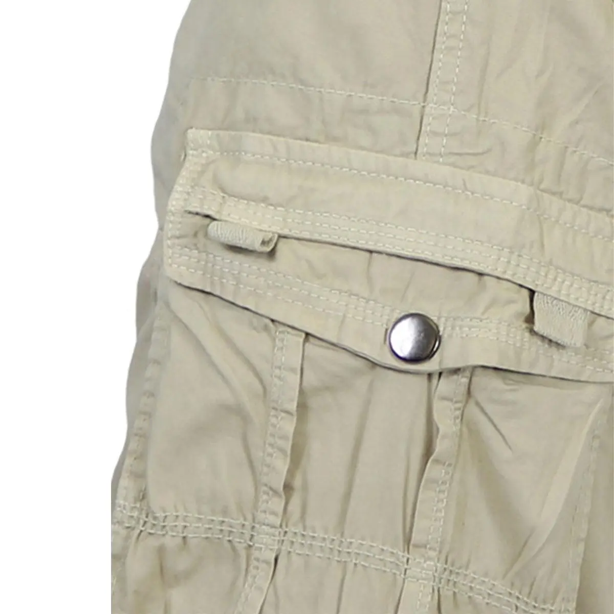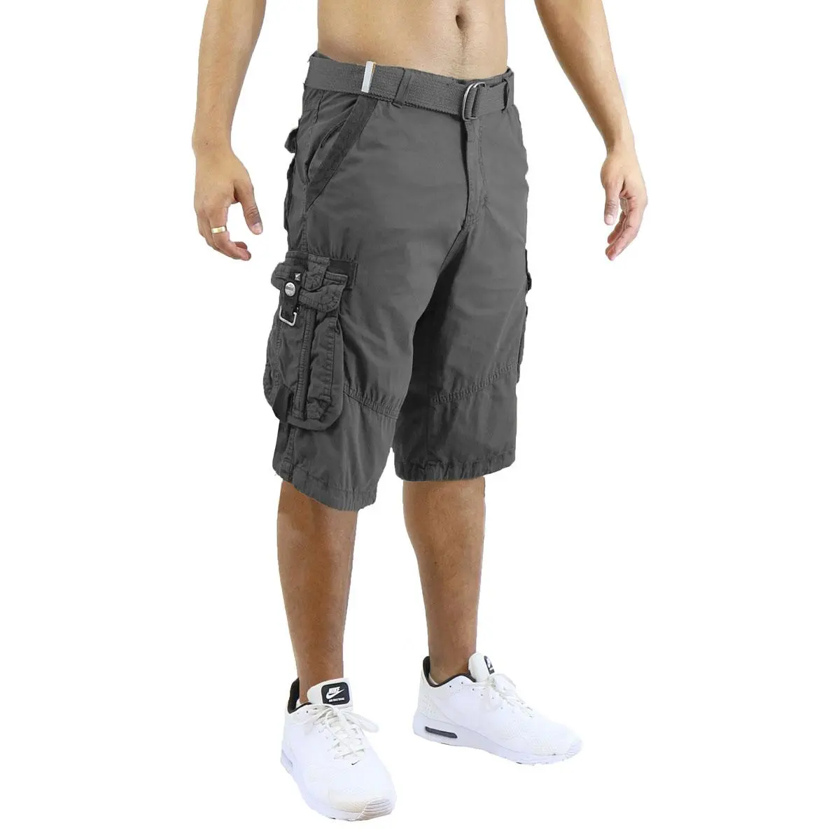 Almost knee length, comes with matching belt Great for summer highly recommend if you love a cargo