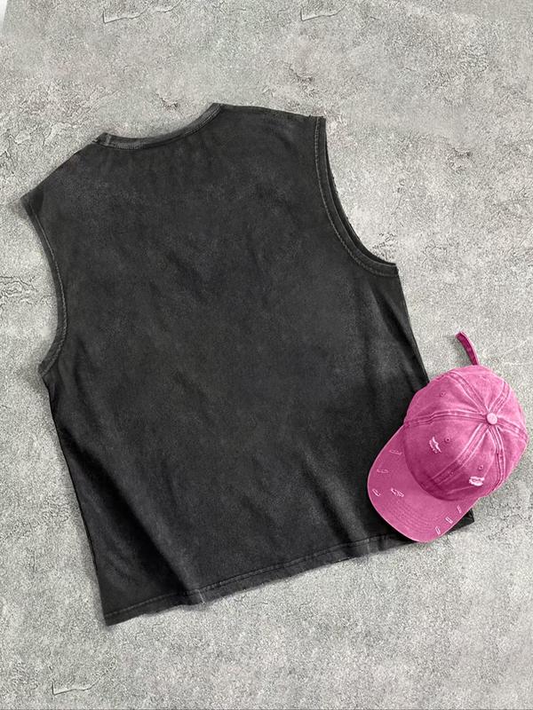 Men's Cartoon Print Tank Top, Regular Fit Casual Fashion Sleeveless Vest Top for Summer, Men's Clothes for Daily Wear, Clothing, Cotton Summer Tank Tops, Breathable Tank Tops