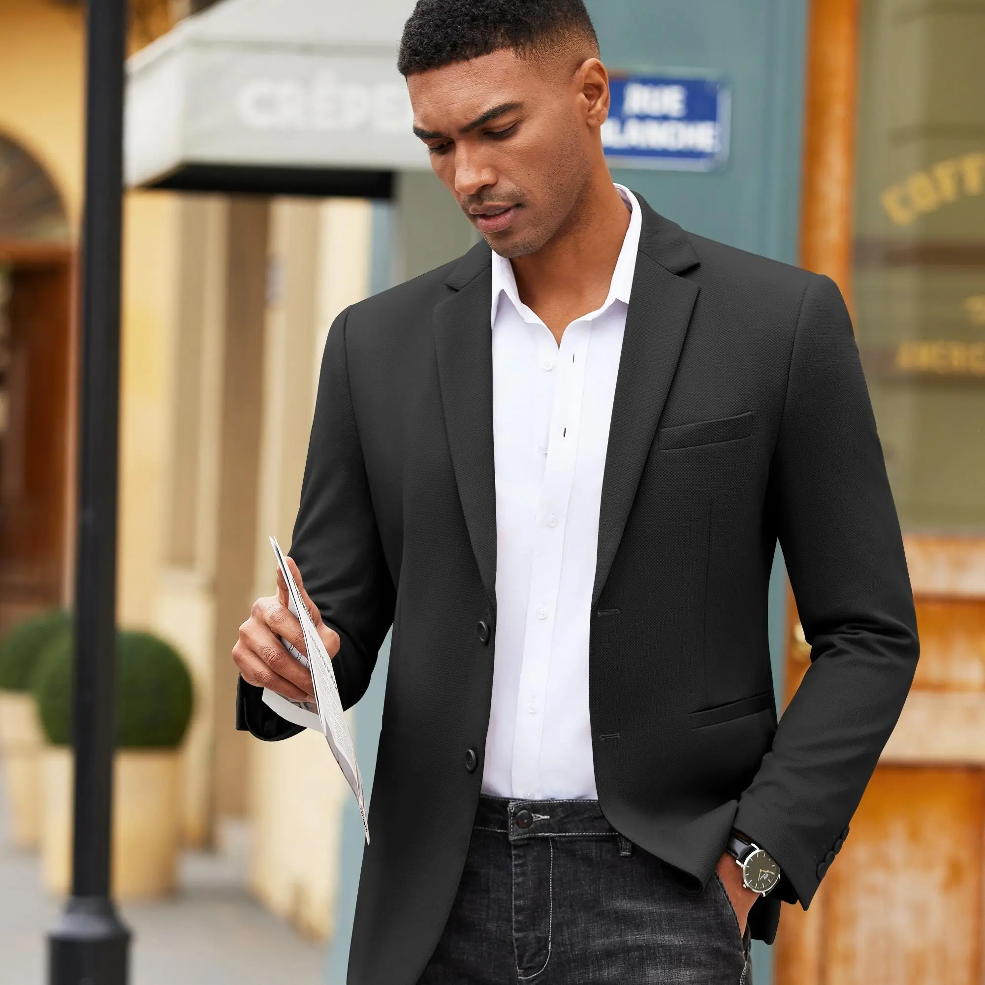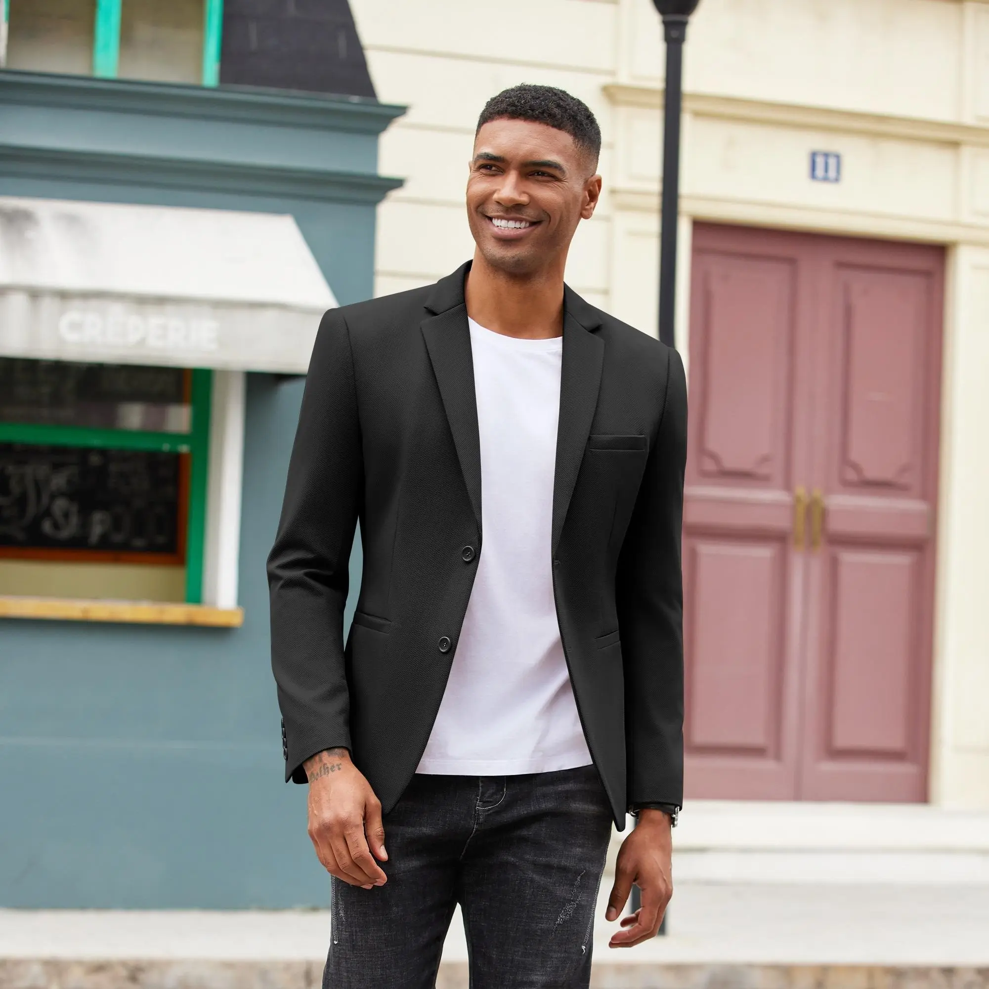 ·VERSATILE MATCH: This mens sport coat is ideal to match with t shirts and casual pants for a stylish look or pair with dress shirt and suit pants for a business and formal look. This lightweight suit jacket is is the perfect addition to any modern man's wardrobe.