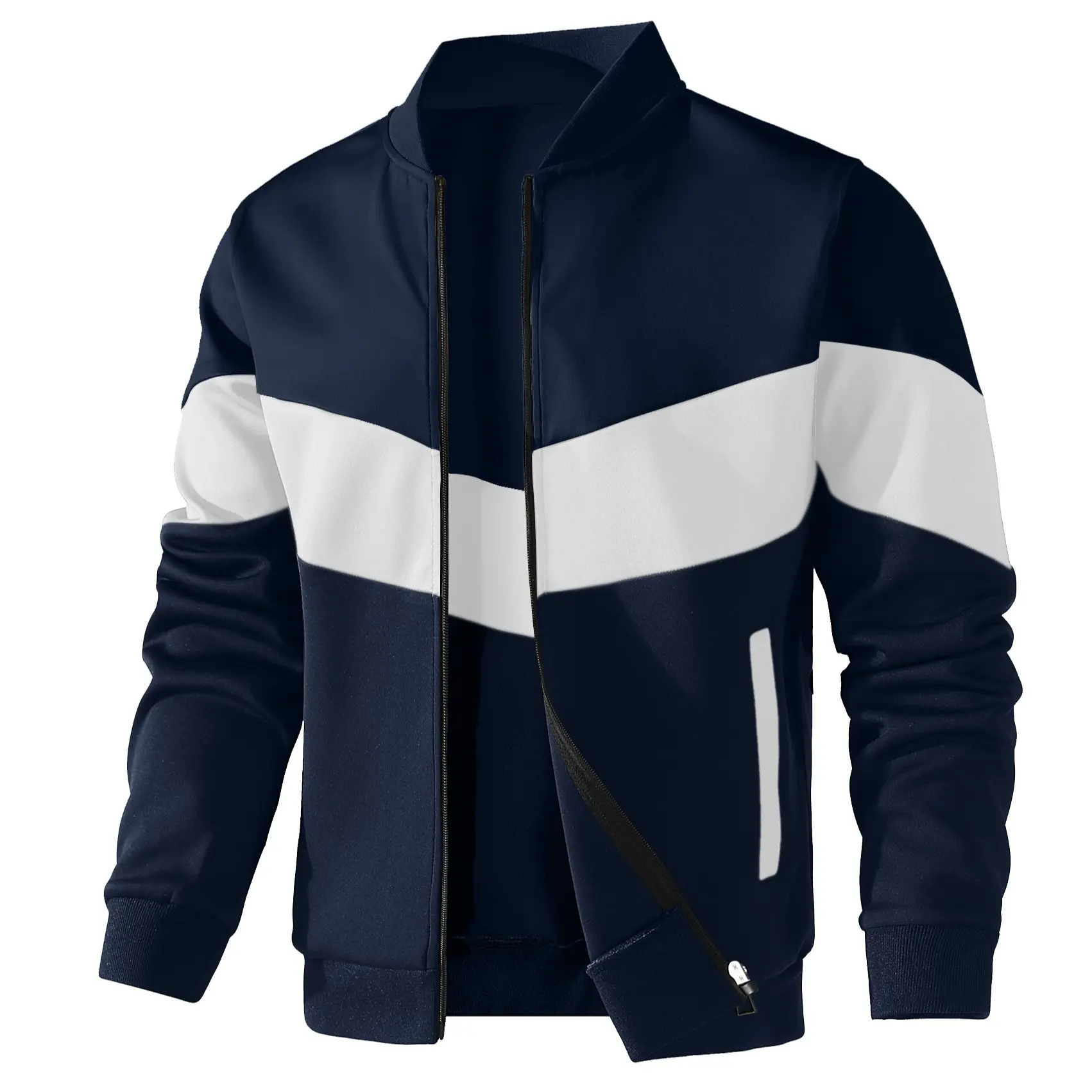 Men's Full Zip Up Varsity Jacket Details: Full zipper closure, as long with two lower side pockets
