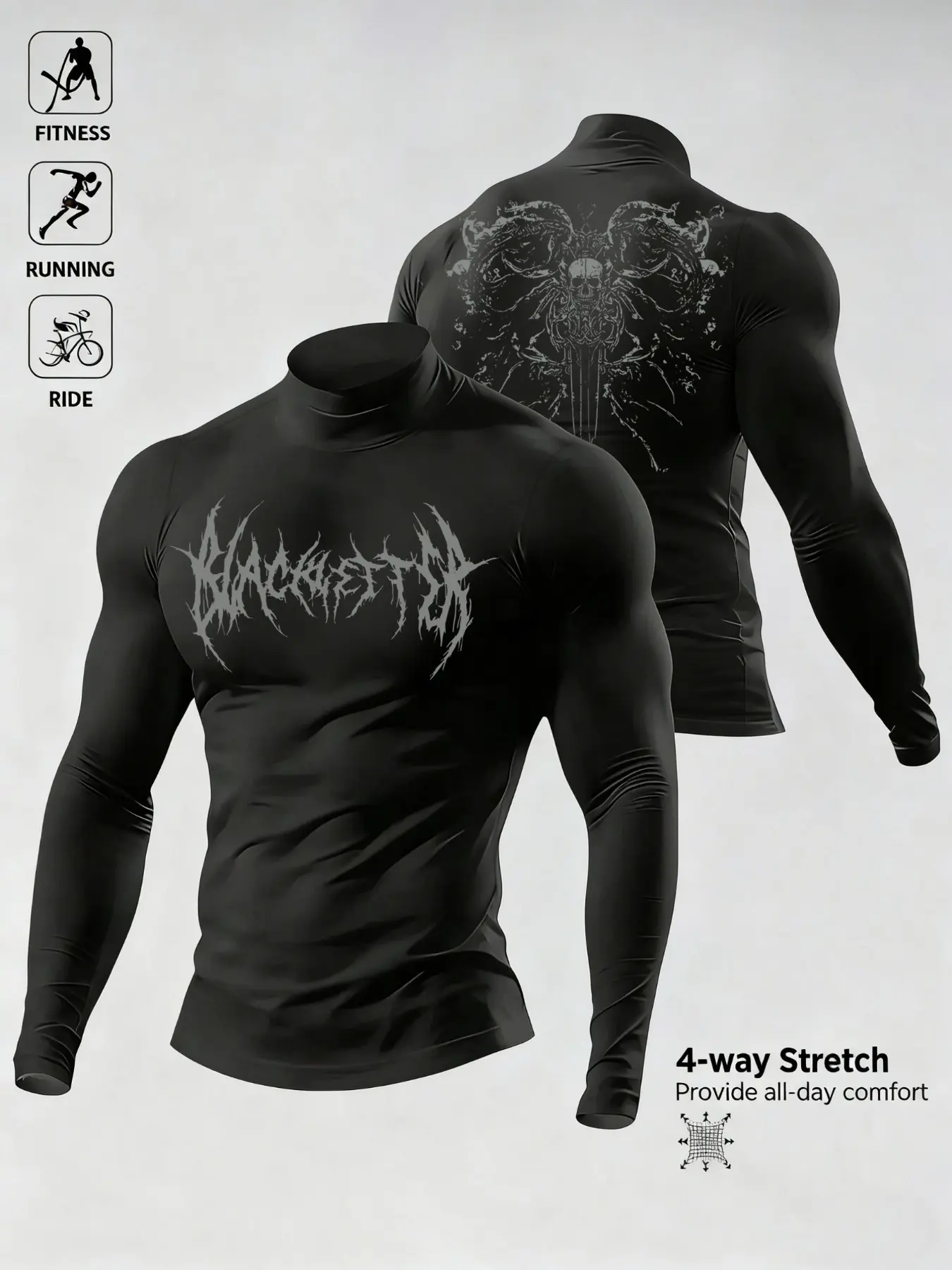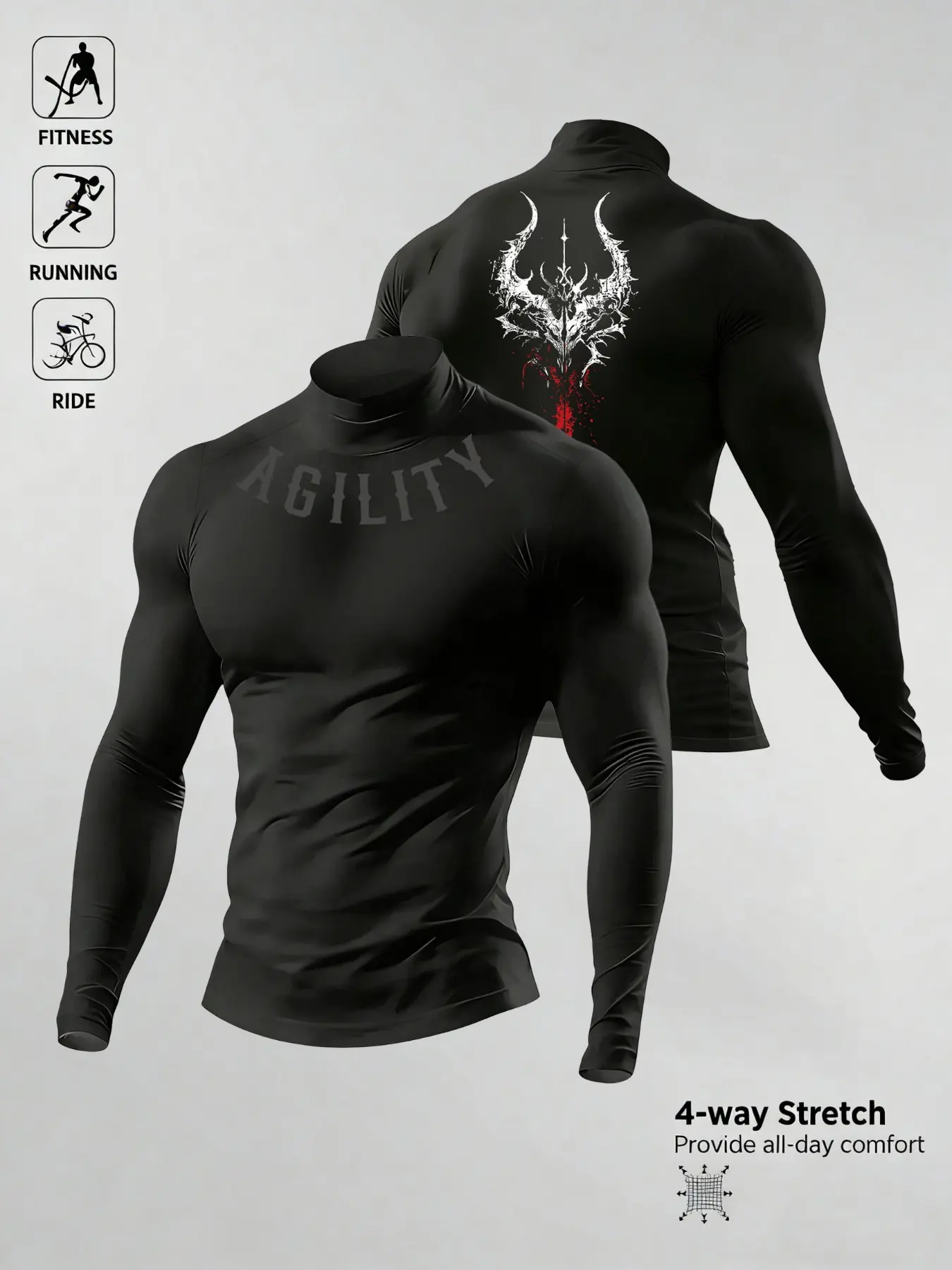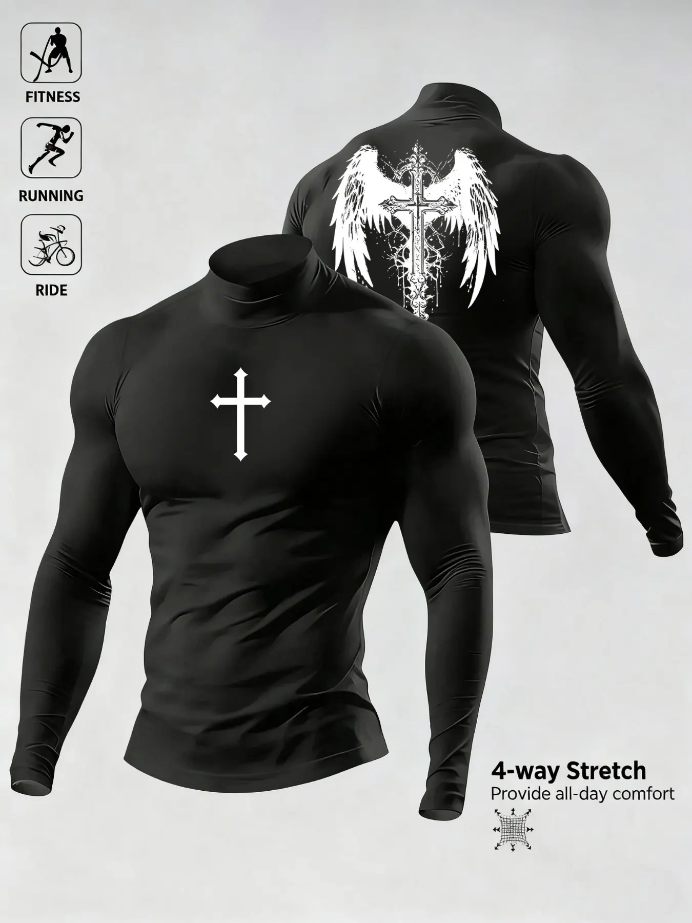 Men's Casual Breathable Fitted Long Sleeve Sports T-Shirt, Compression Top with Turtle Neck Design, Fitness Long Sleeve Shirt #workoutgear #sportwear #fitnessfashion #spotlightsportswear #sportsshopping