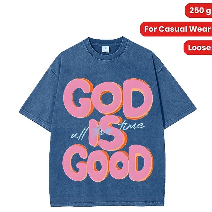 230G Washed Pure Cotton T - Shirt, Men'S Casual Fashion, With 'GOD IS GOOD All The Time' Words Print, Outdoor Sports T - Shirt |   Loose Fit |   Soft Knitted T - Shirt