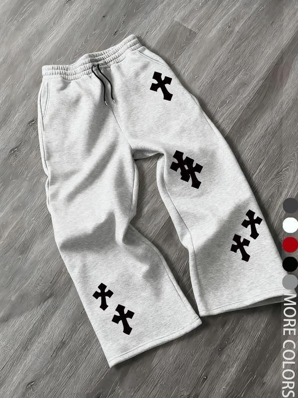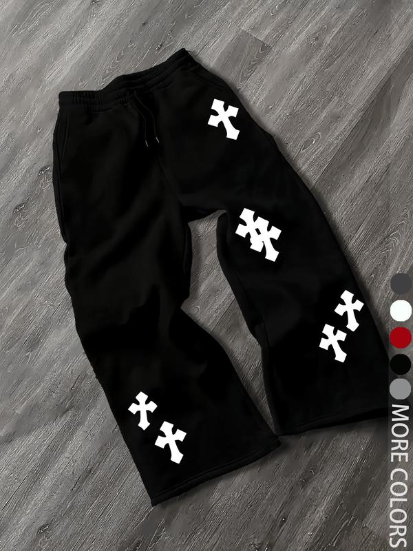 Men's Casual Street Style Cross Print Jogger Pants, Loose Fit Woven Fabric, Fall & Winter Fashion, Trendy for Men