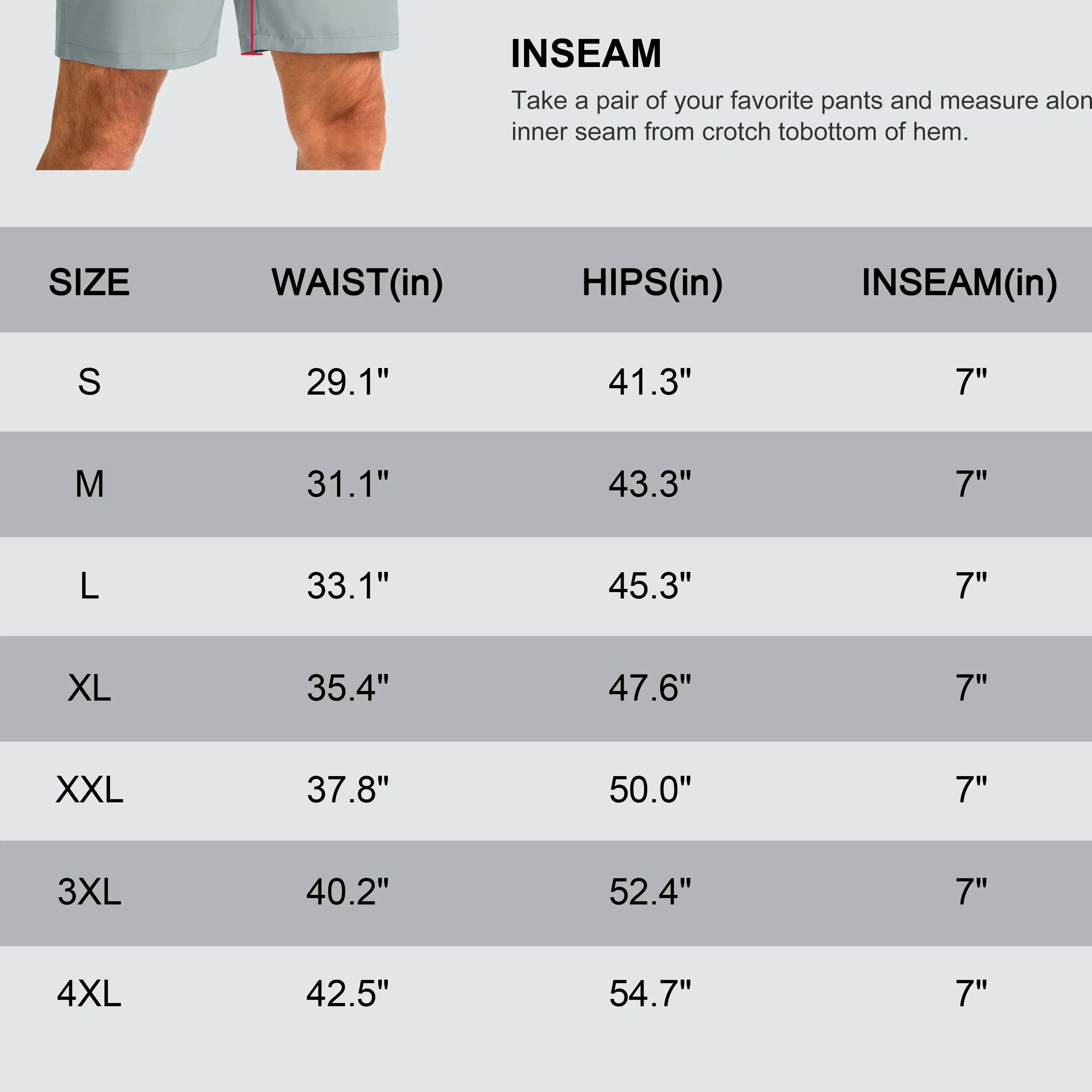 ·7'' inseam: Above the knee, provides better ventilation and heat dissipation. Made from multi-directional stretch fabric that moves freely and comfortably with you.