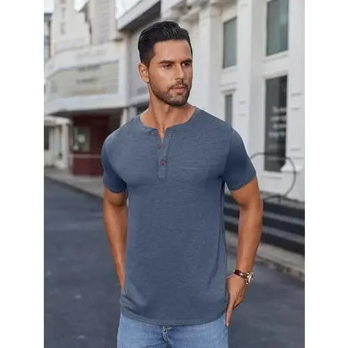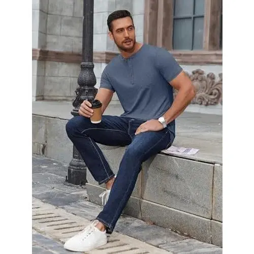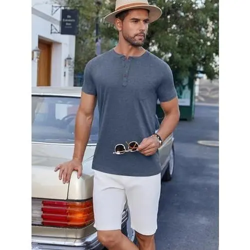 ·SHORT SLEEVE HENLEYS - Want a basic tops , versatile and saves time? Men's casual t-shirts short sleeve can easily match with shorts,formal pants,casual pants,twill cotton pants and jeans to create a casual stylish, fashionable daily look. Perfect gifts for father, son, husband.