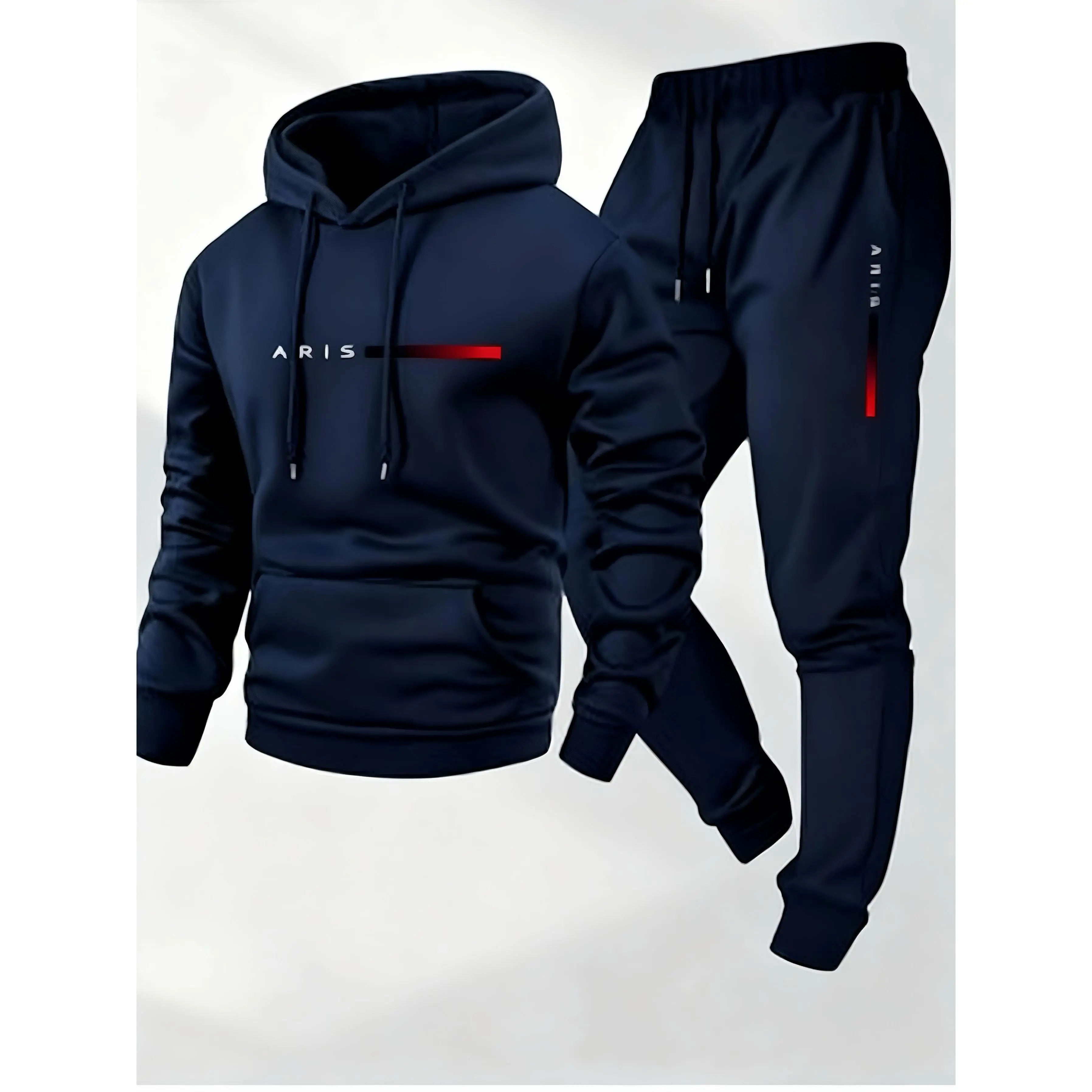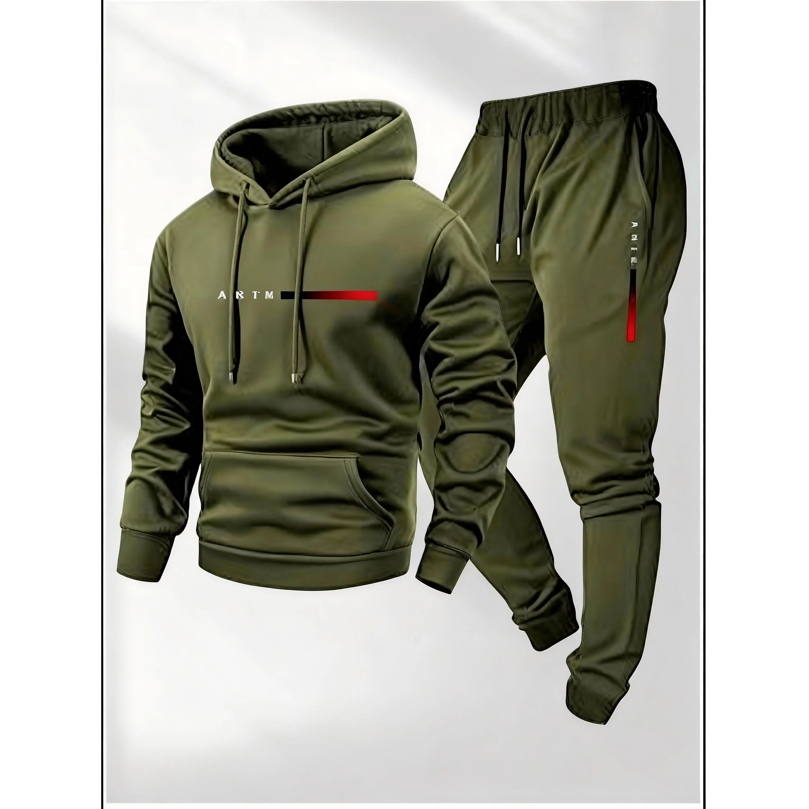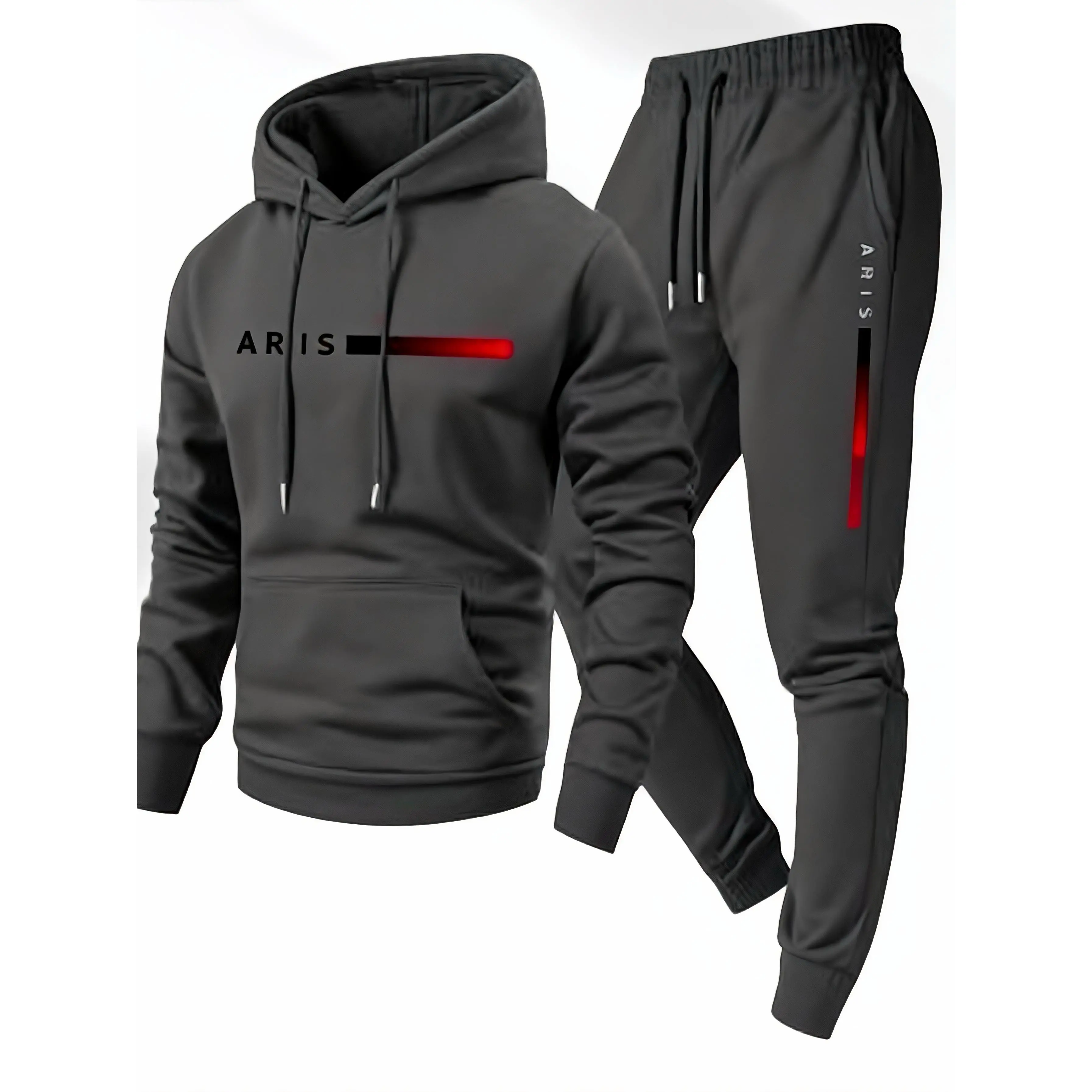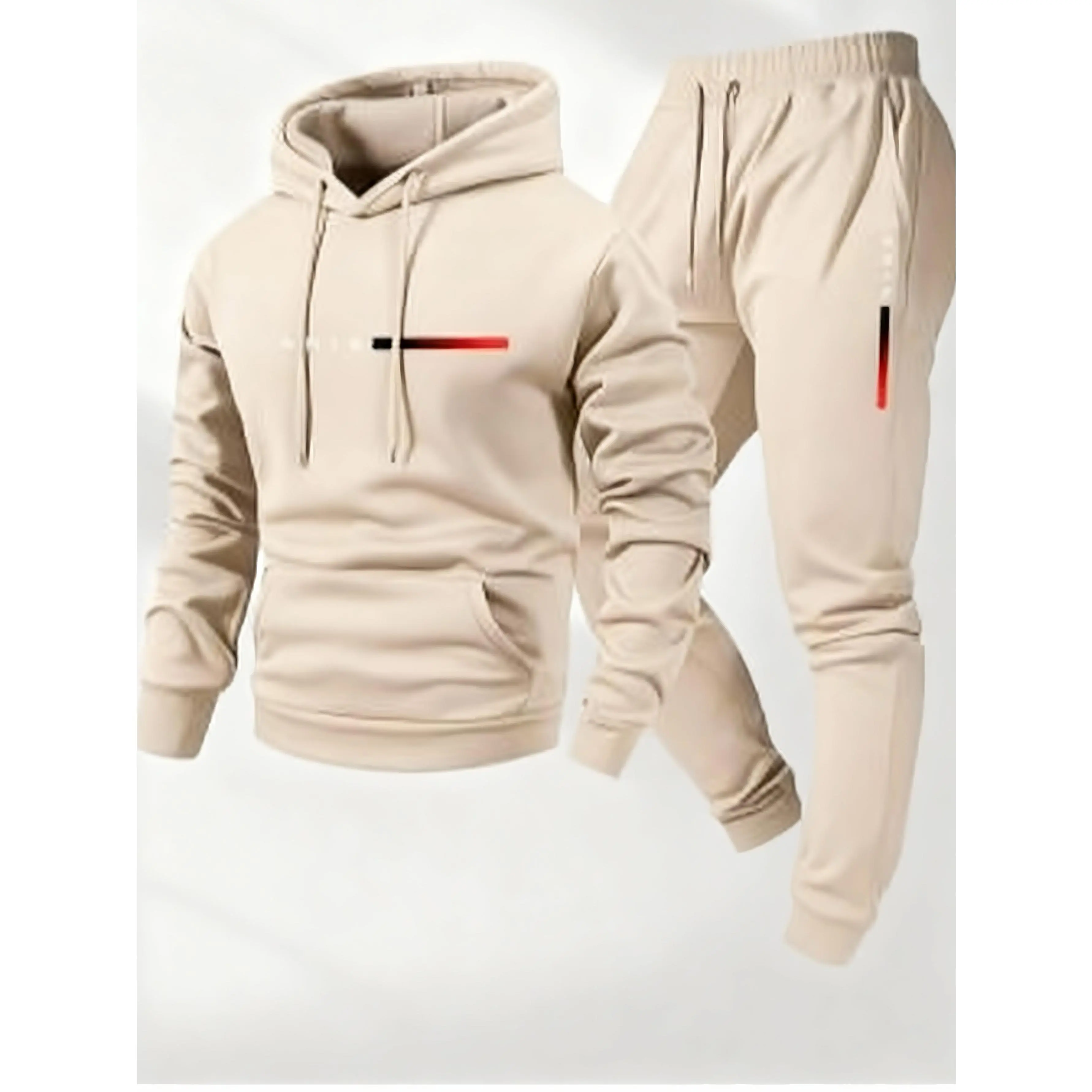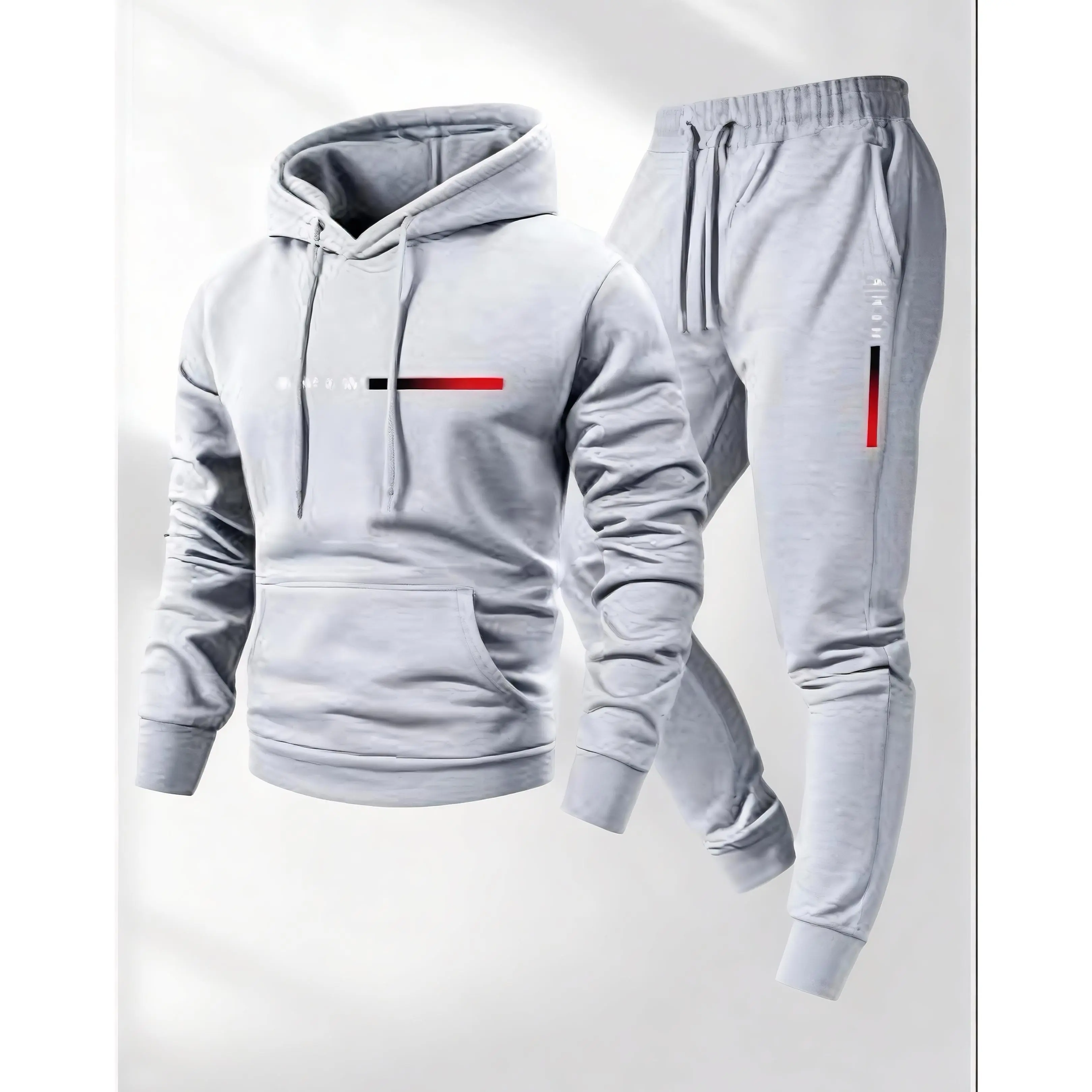 5. Men's Casual Hoodie Tracksuit 2 Piece Set - Light Gray Fashion Letter Print Sweatshirt + Drawstring Jogger Pants Sportswear for Daily/Leisure