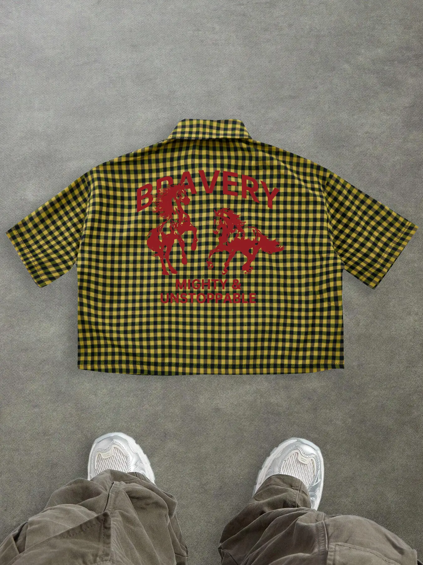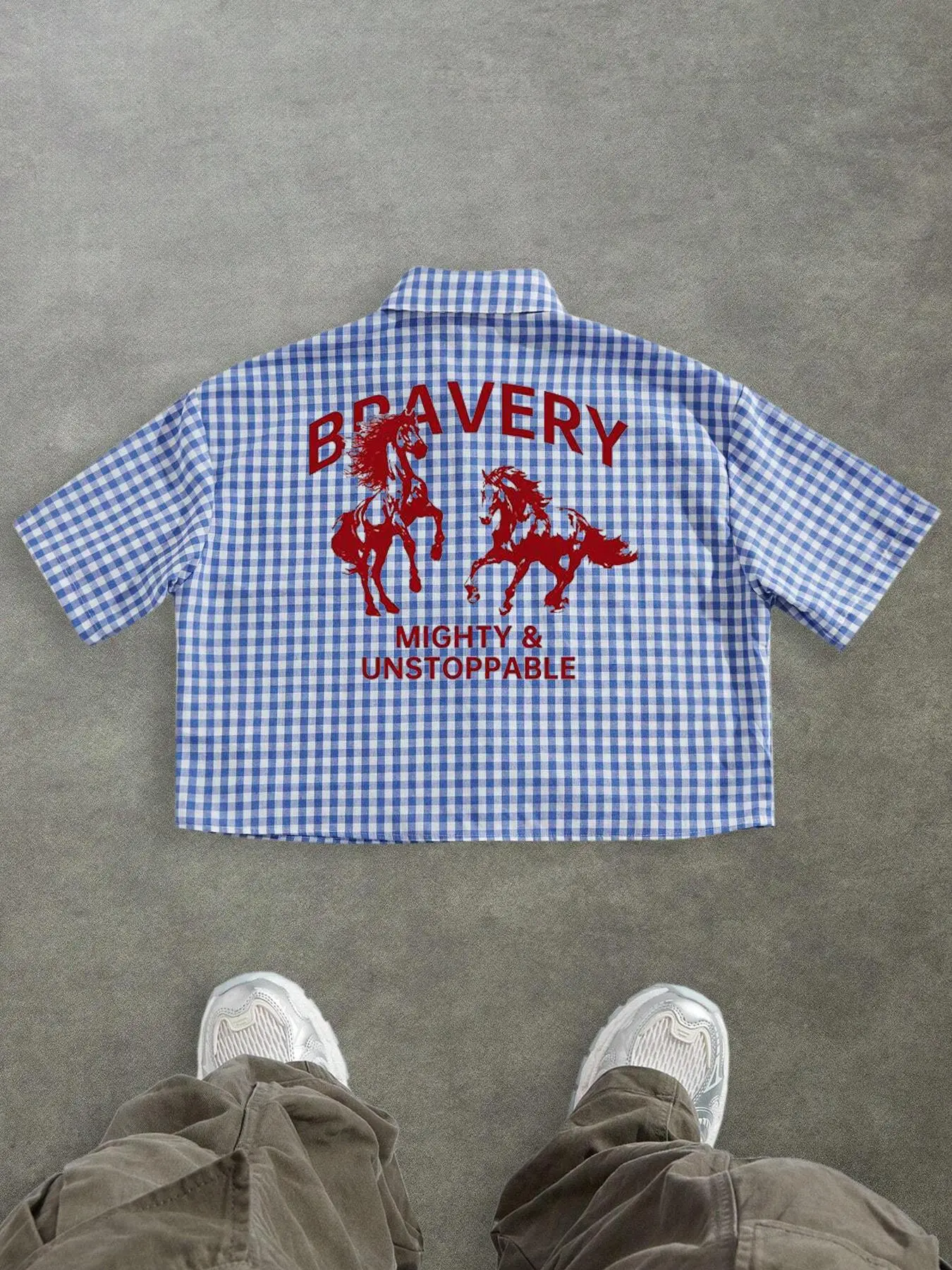 5. Men's Regular Fit Horse & Letter Print Short Sleeve Shirt, Casual Retro Gingham Shirt for Daily Wear, Fashion Aesthetic Men's Top for Summer